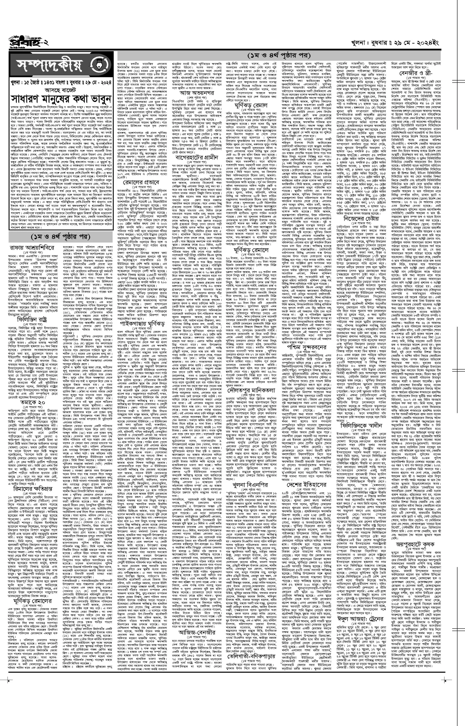 আজকের প্রবাহ-২৯ মে-২০২৪ ইং