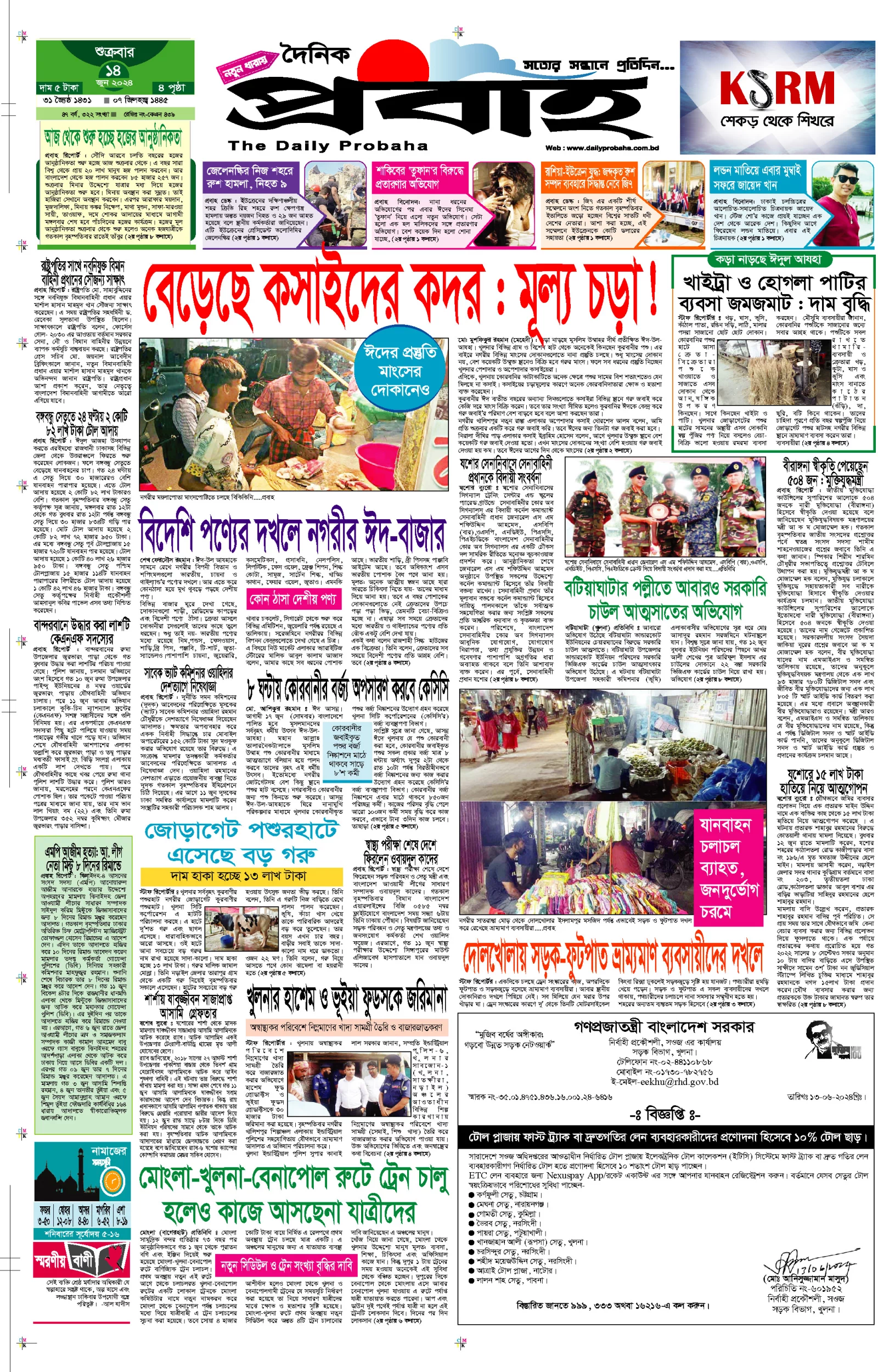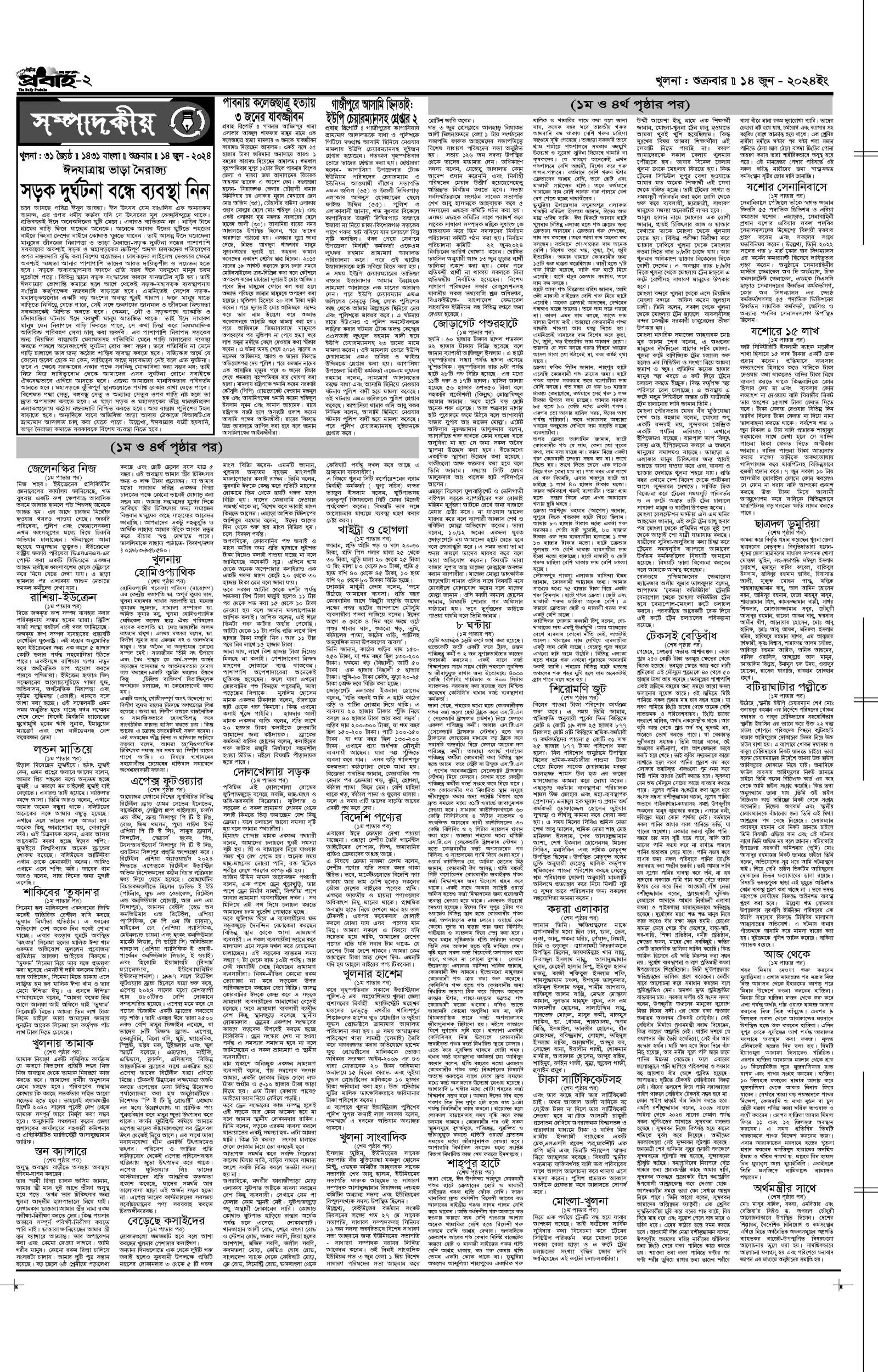 আজকের প্রবাহ-১৪ জুন-২০২৪ ইং