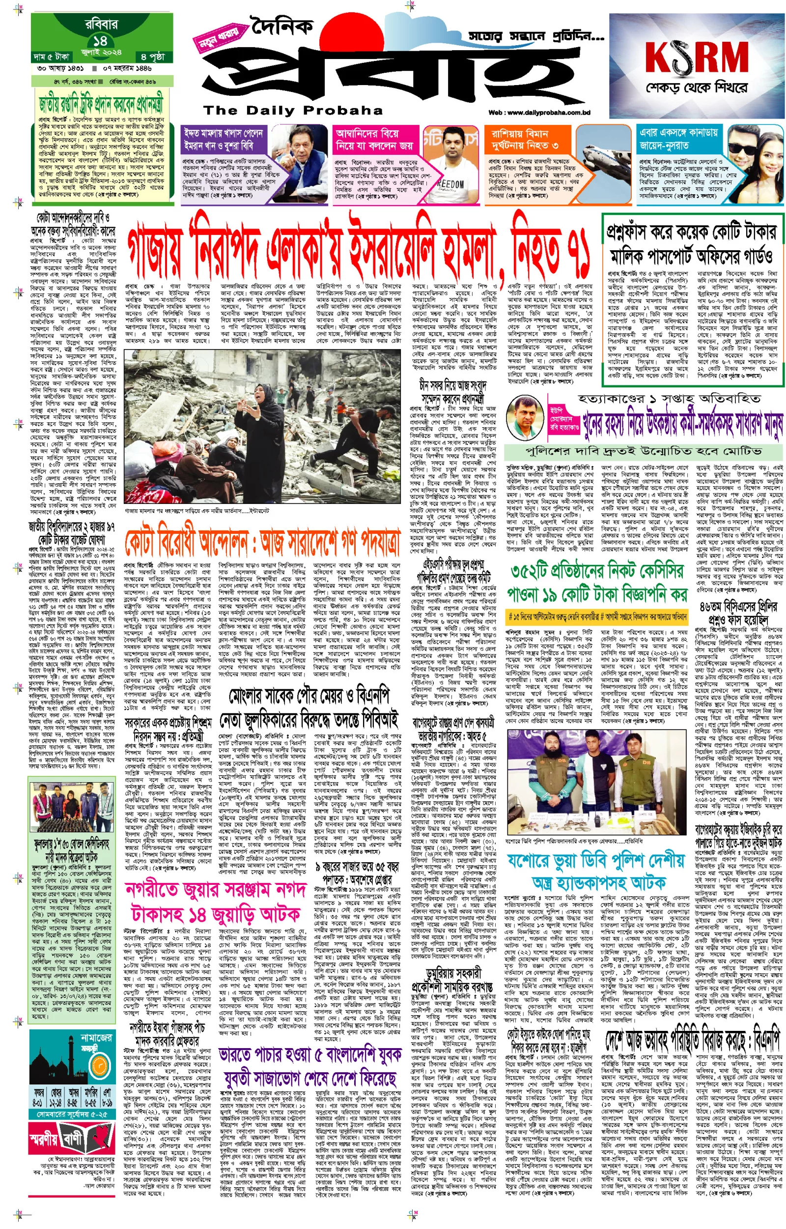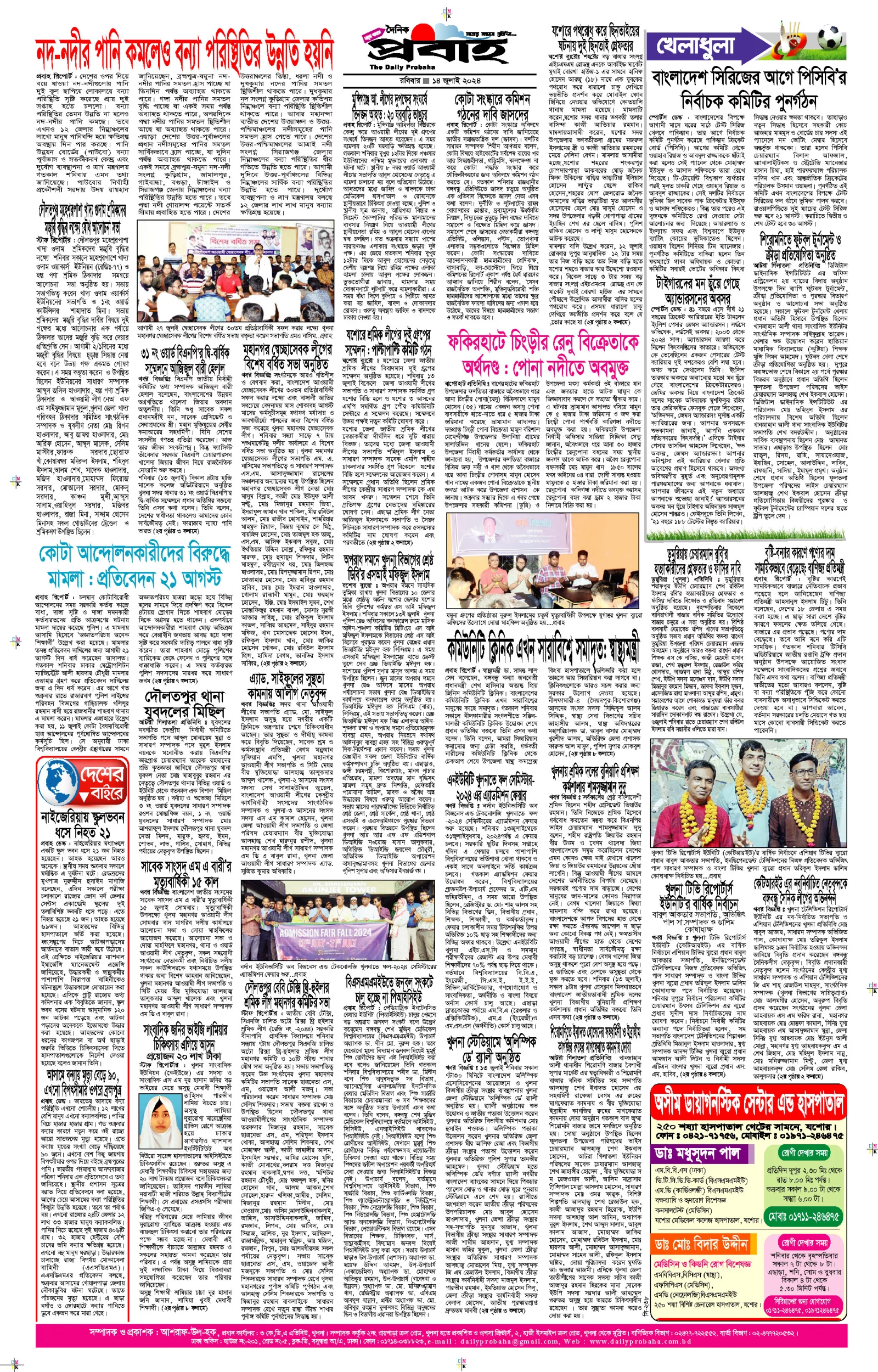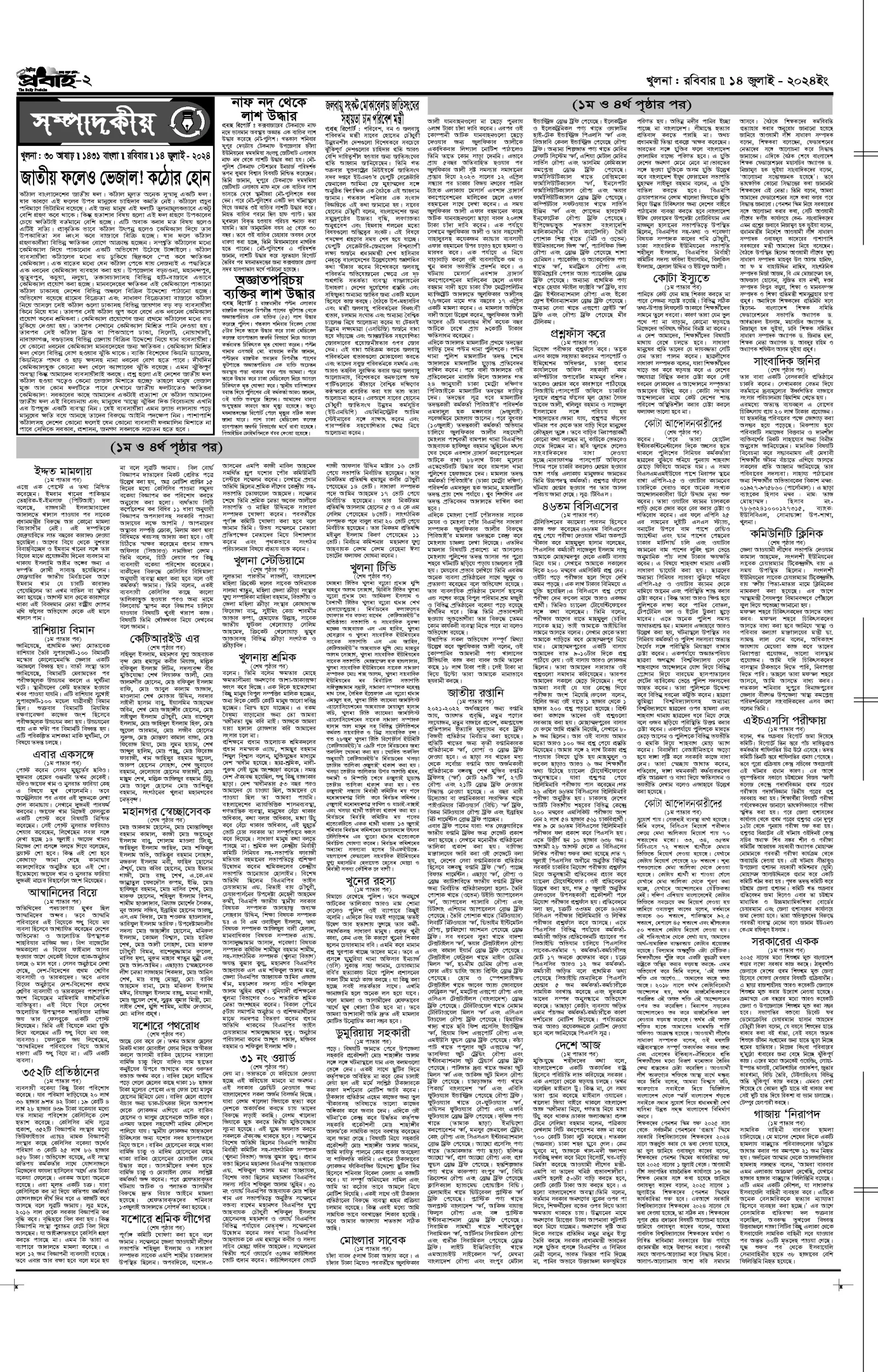 আজকের প্রবাহ-১৪ জুলাই-২০২৪ ইং