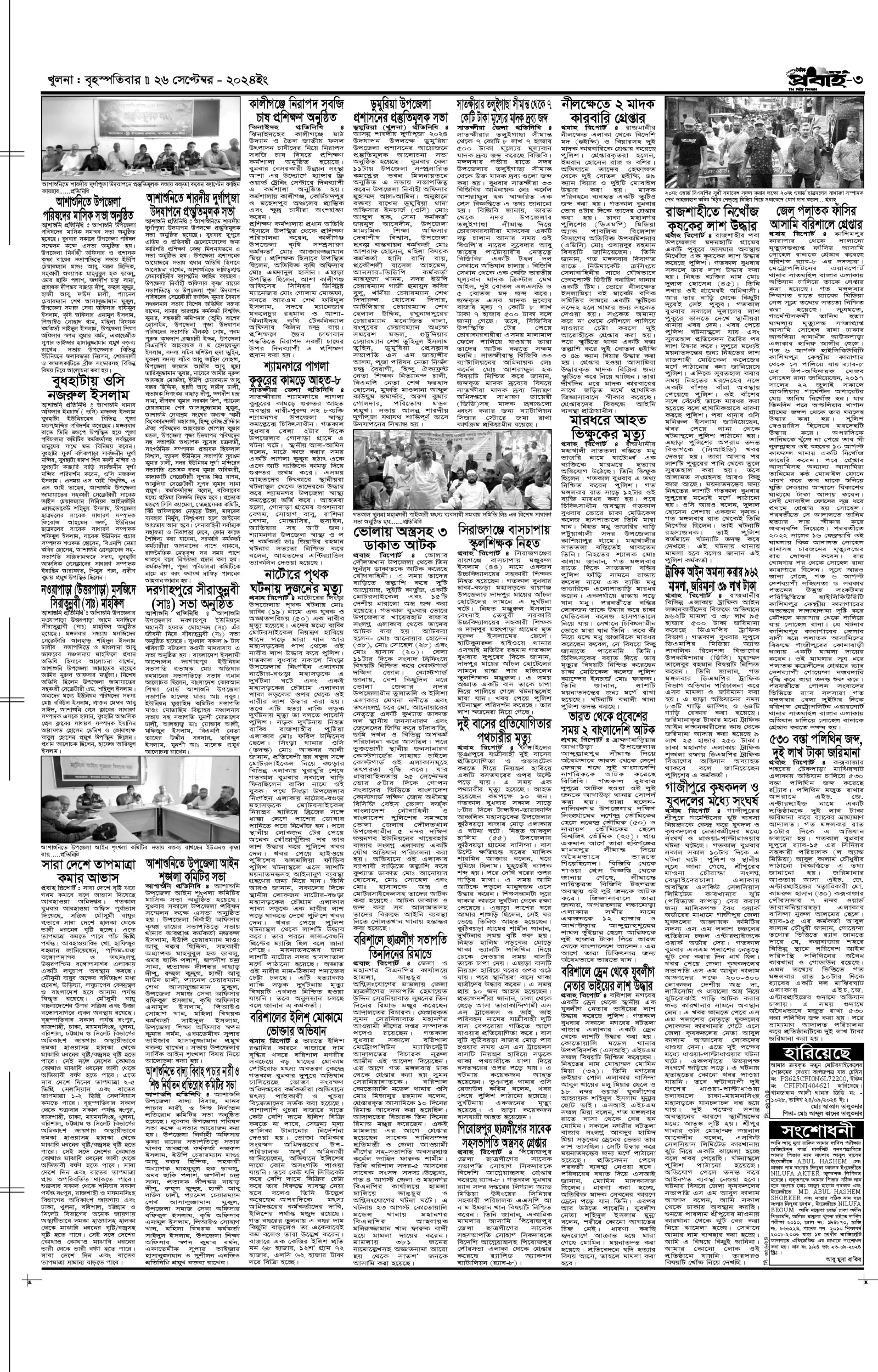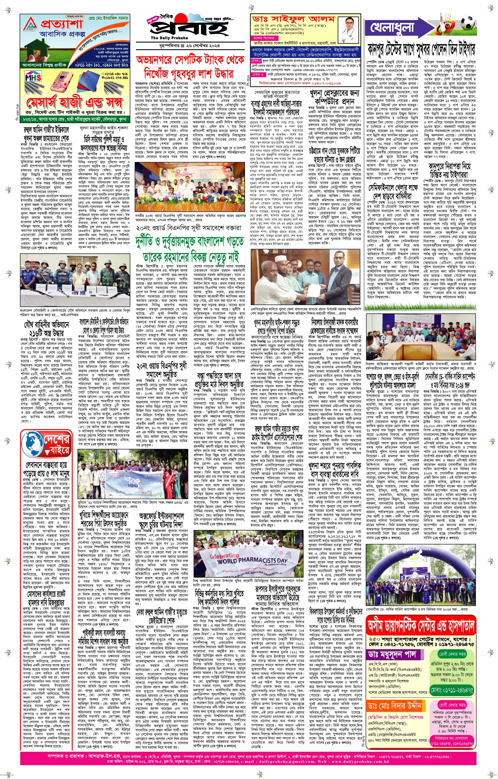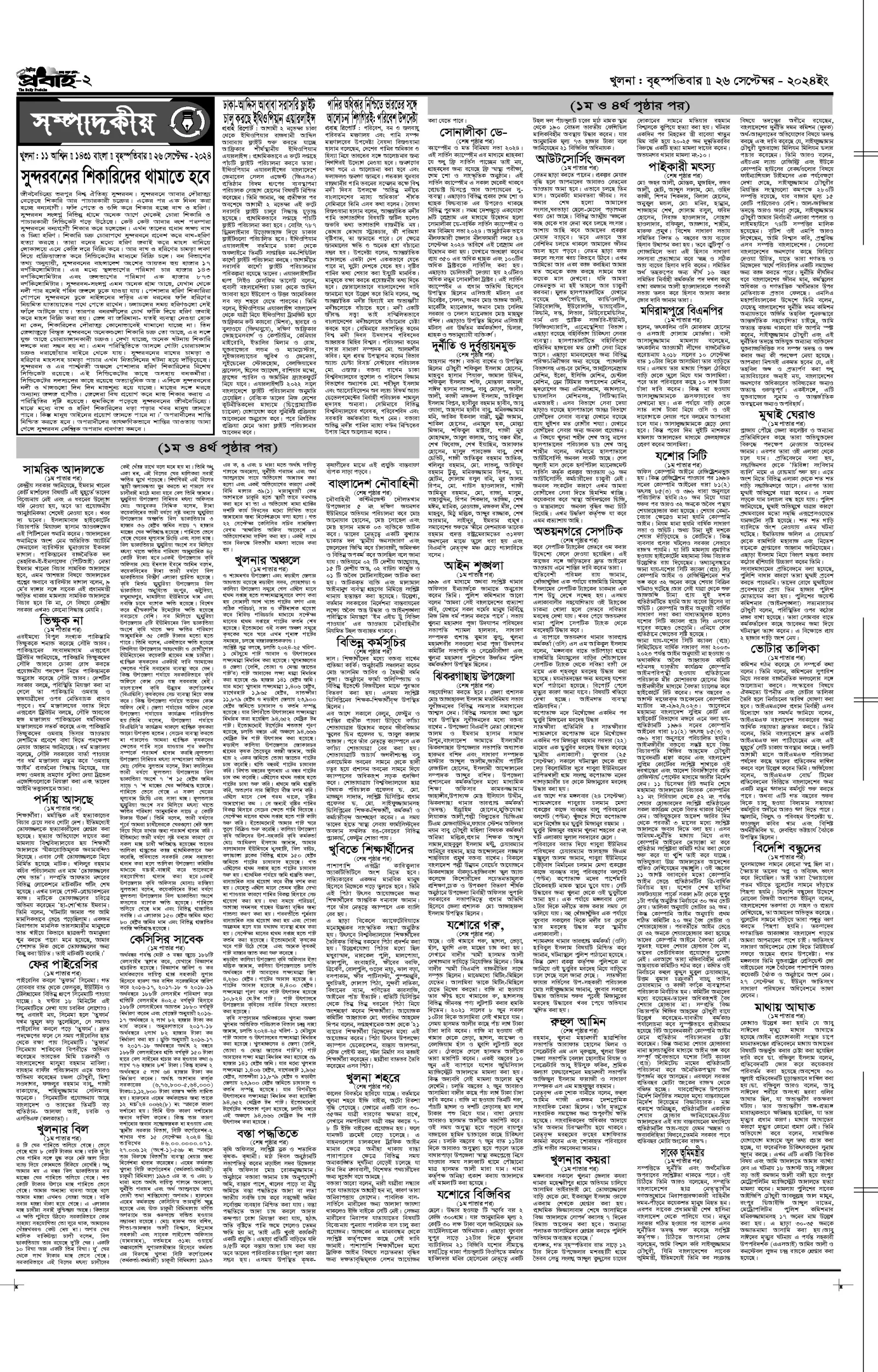 আজকের প্রবাহ-২৬ সেপ্টেম্বর-২০২৪ ইং