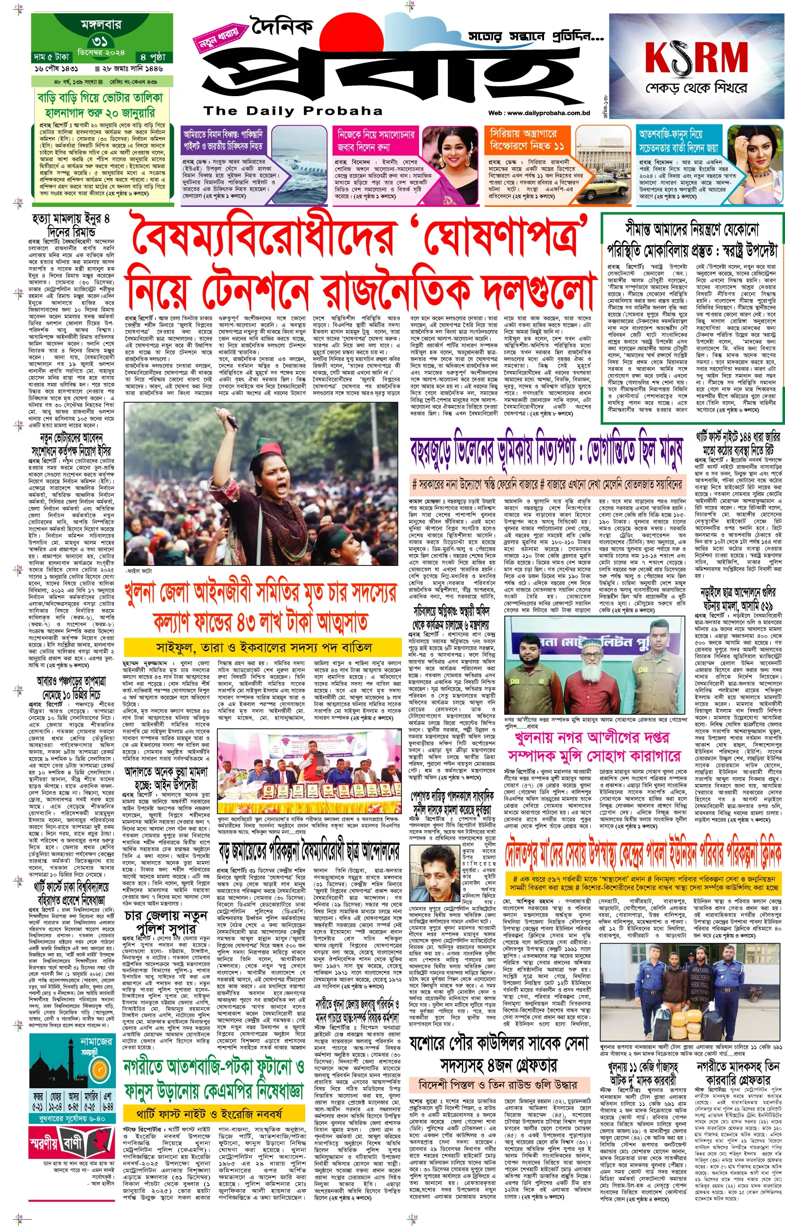 আজকের প্রবাহ-৩১ ডিসেম্বর-২০২৪ ইং