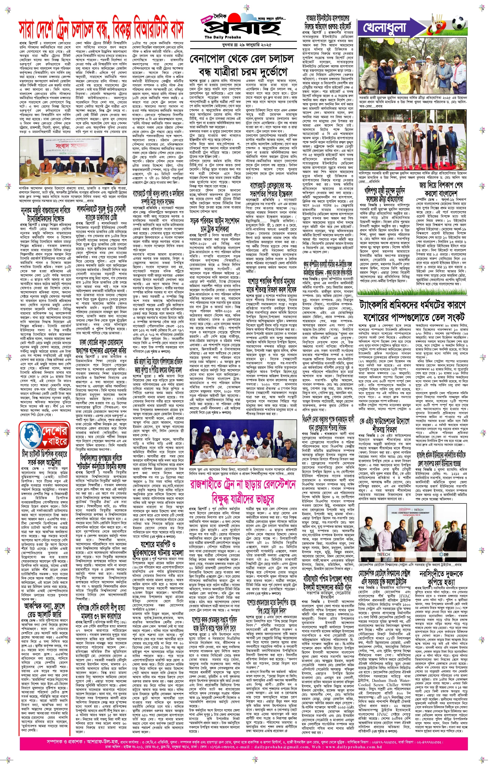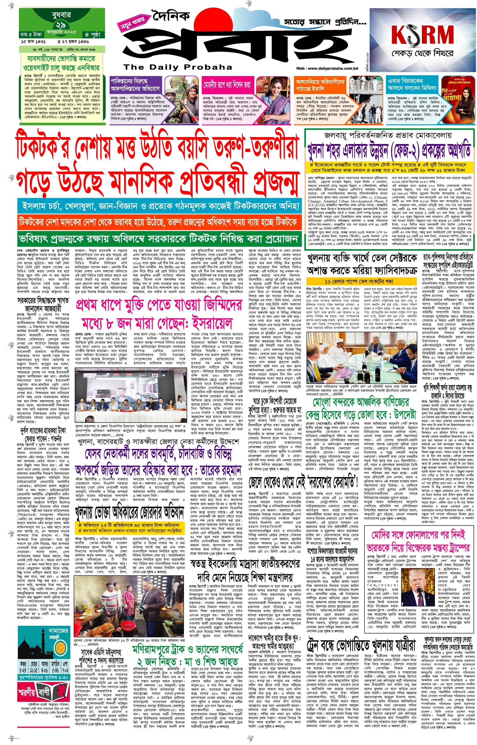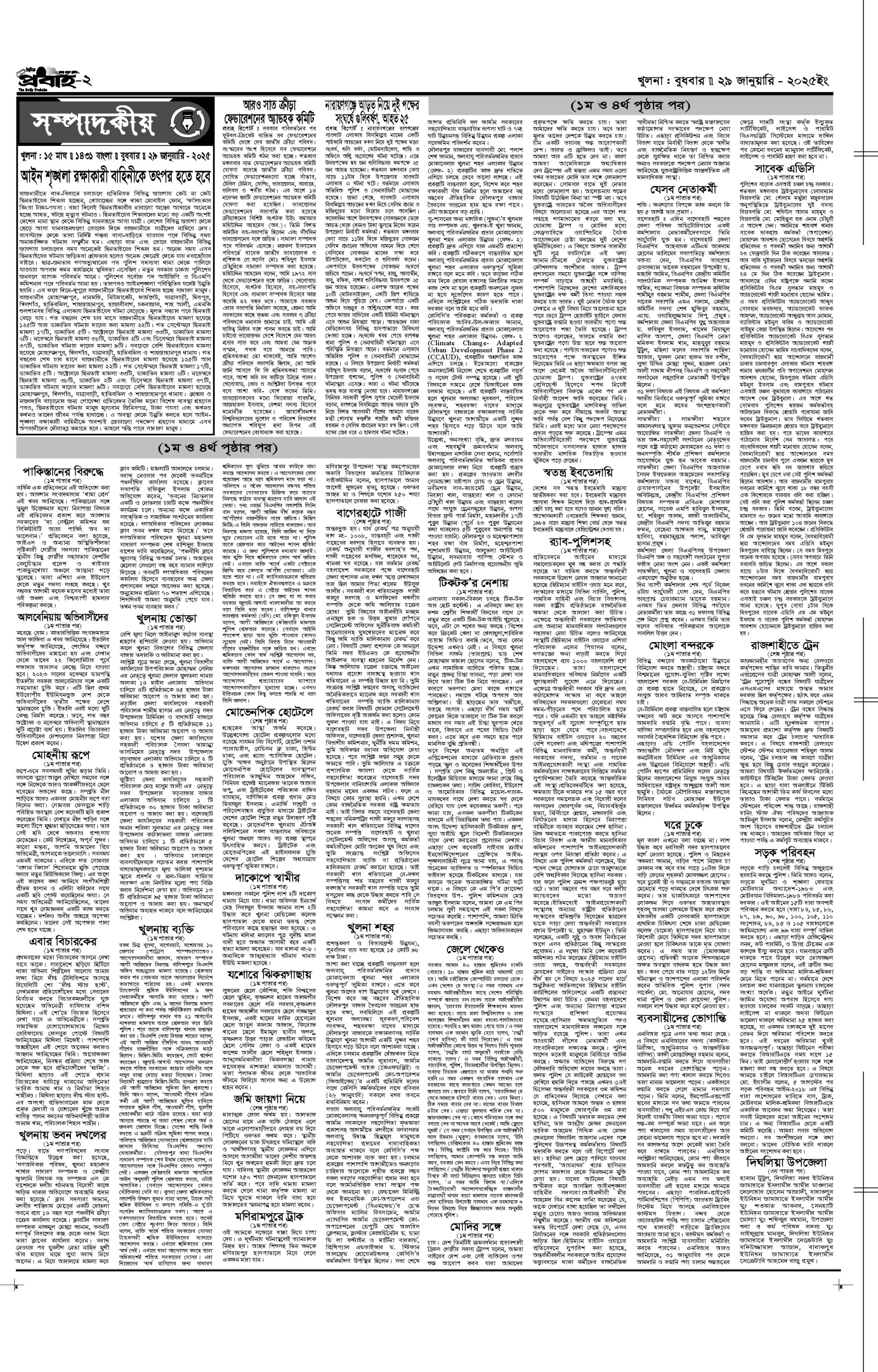 আজকের প্রবাহ-২৯ জানুয়ারি-২০২৫ ইং