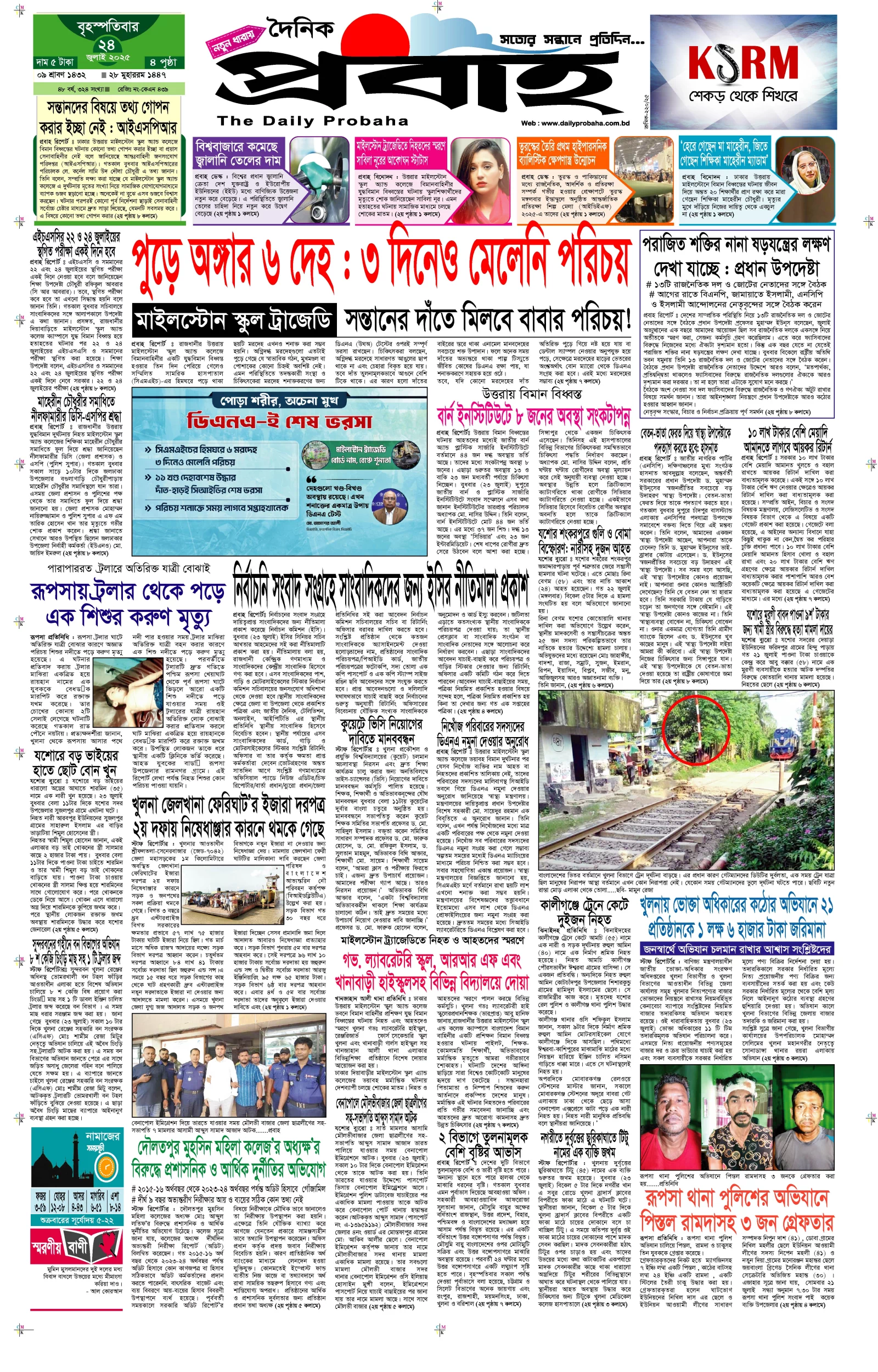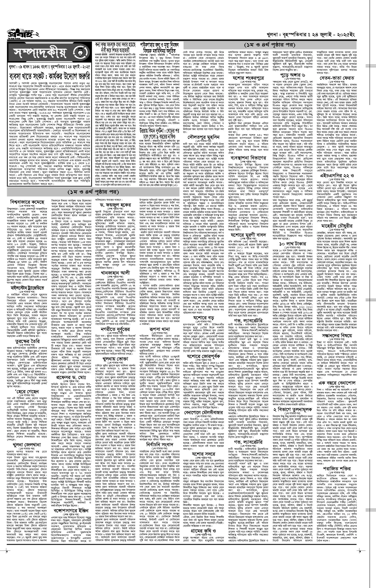 আজকের প্রবাহ-২৪ জুলাই-২০২৫ ইং