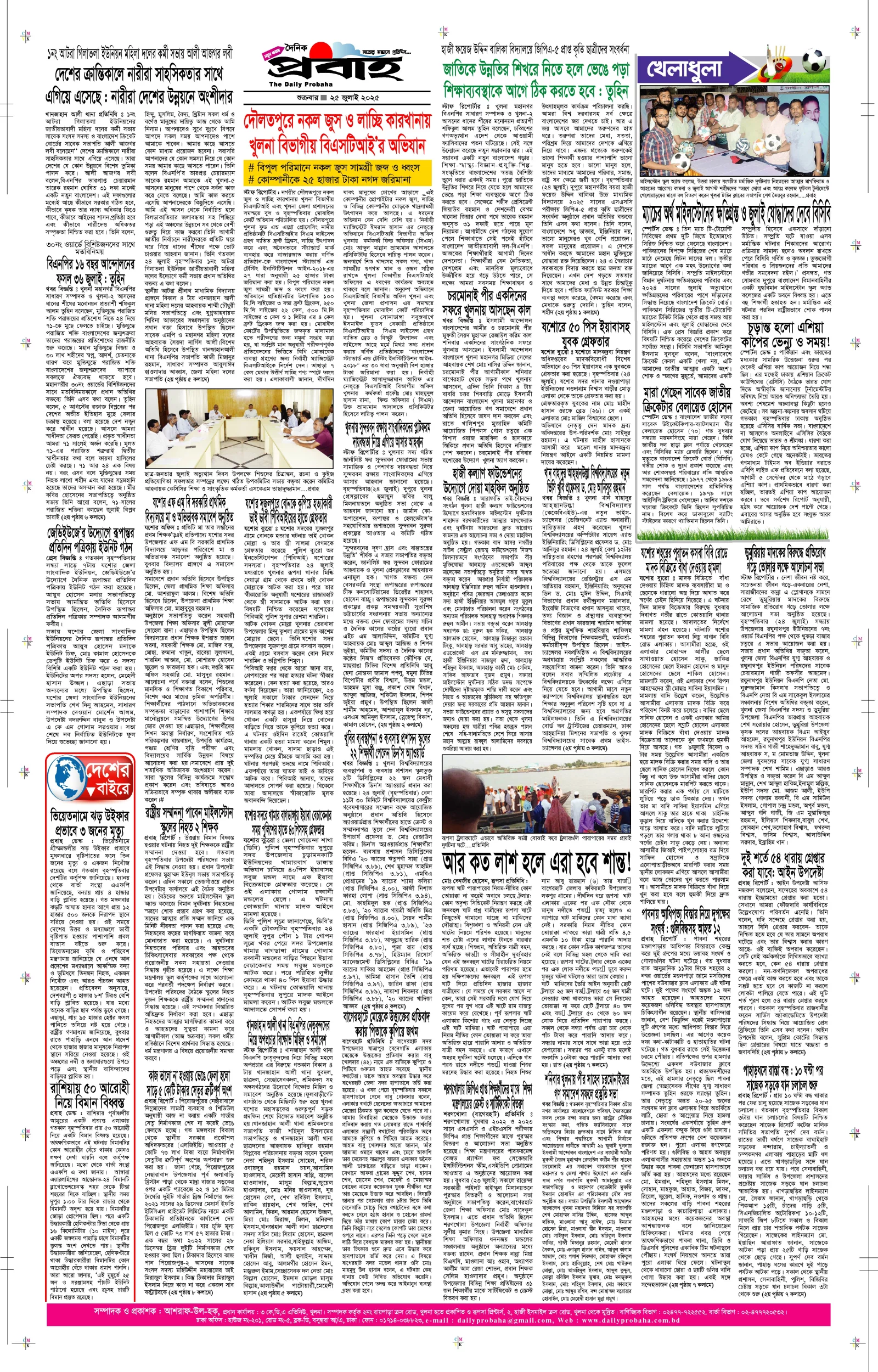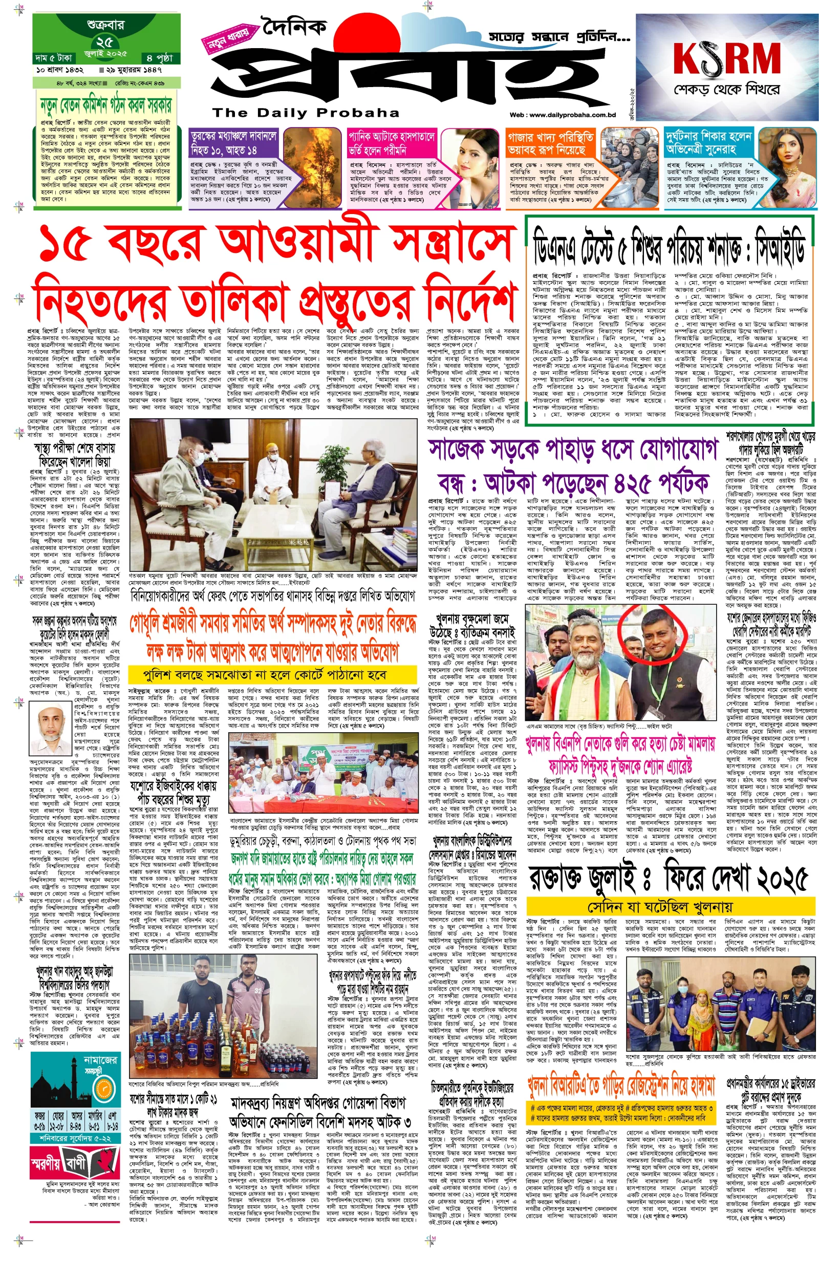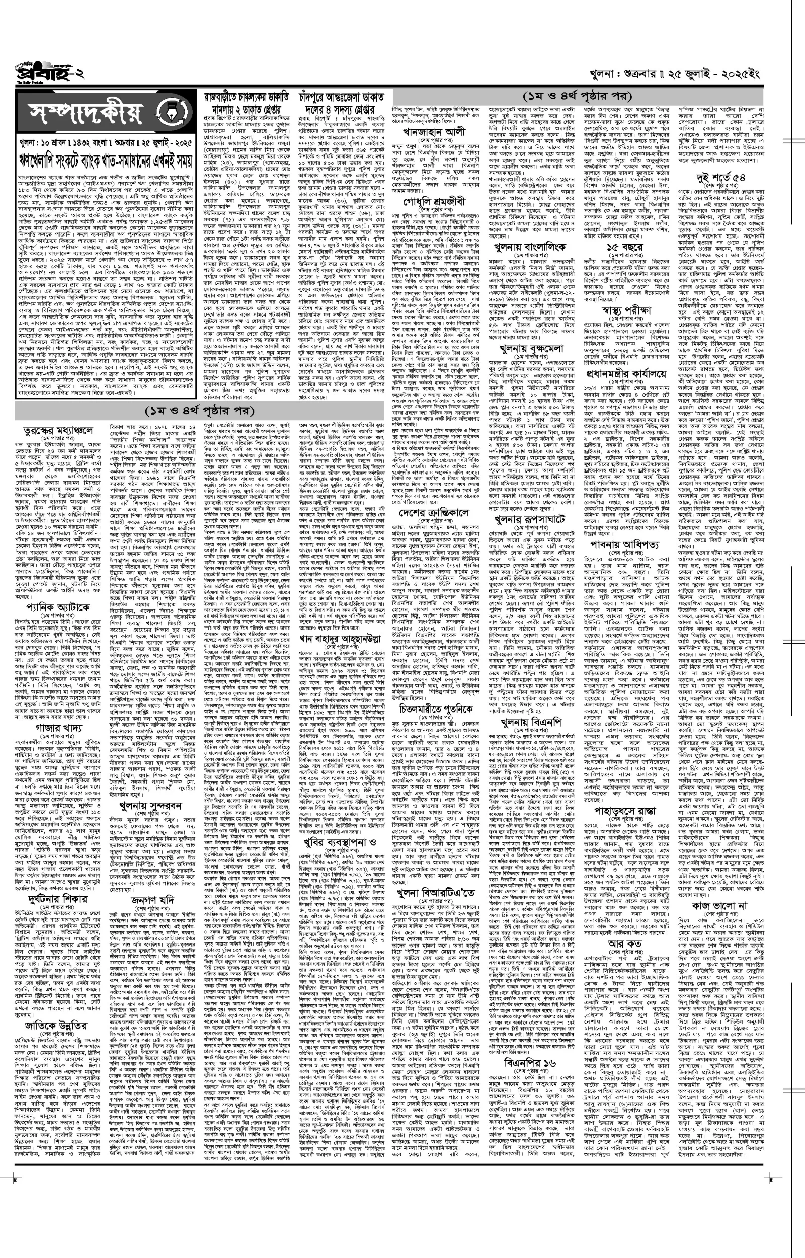 আজকের প্রবাহ-২৫ জুলাই-২০২৫ ইং