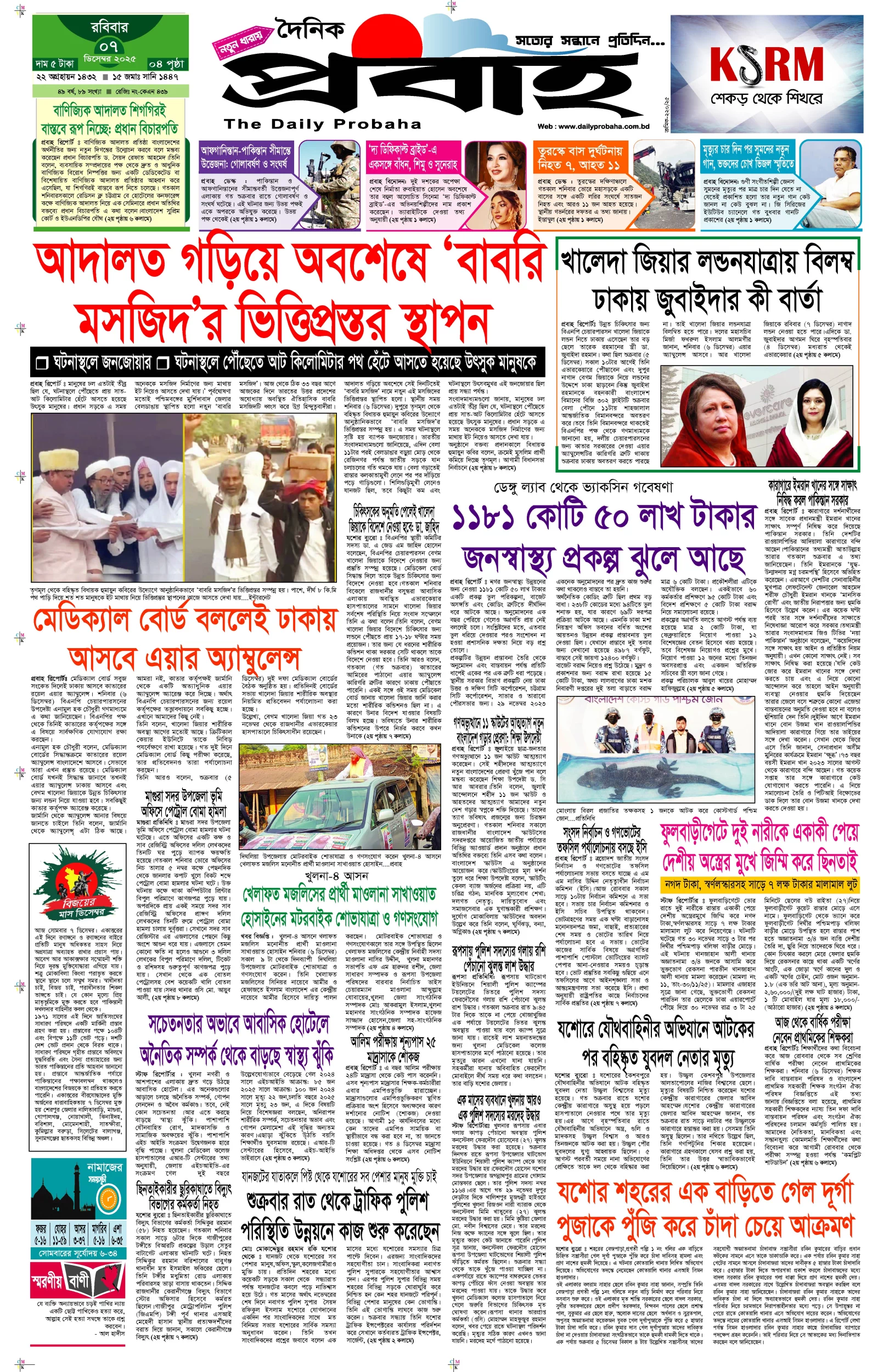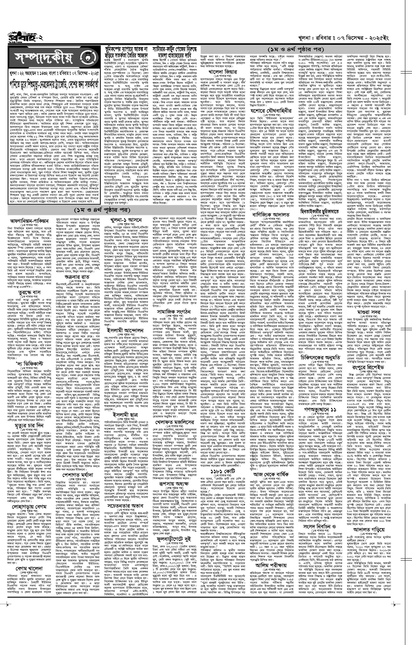 আজকের প্রবাহ-৭ ডিসেম্বর-২০২৫ ইং