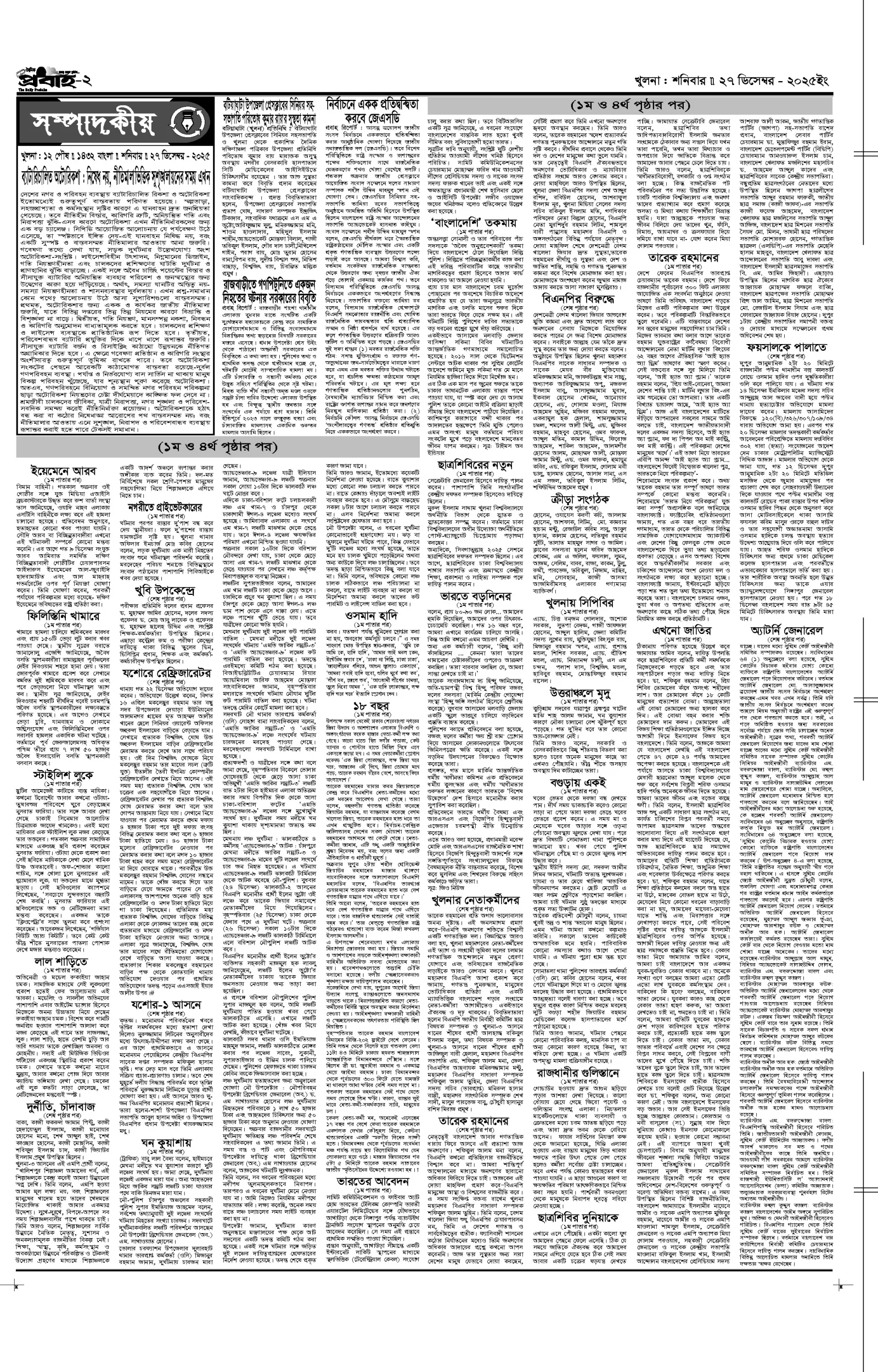 আজকের প্রবাহ-২৭ ডিসেম্বর-২০২৫ ইং