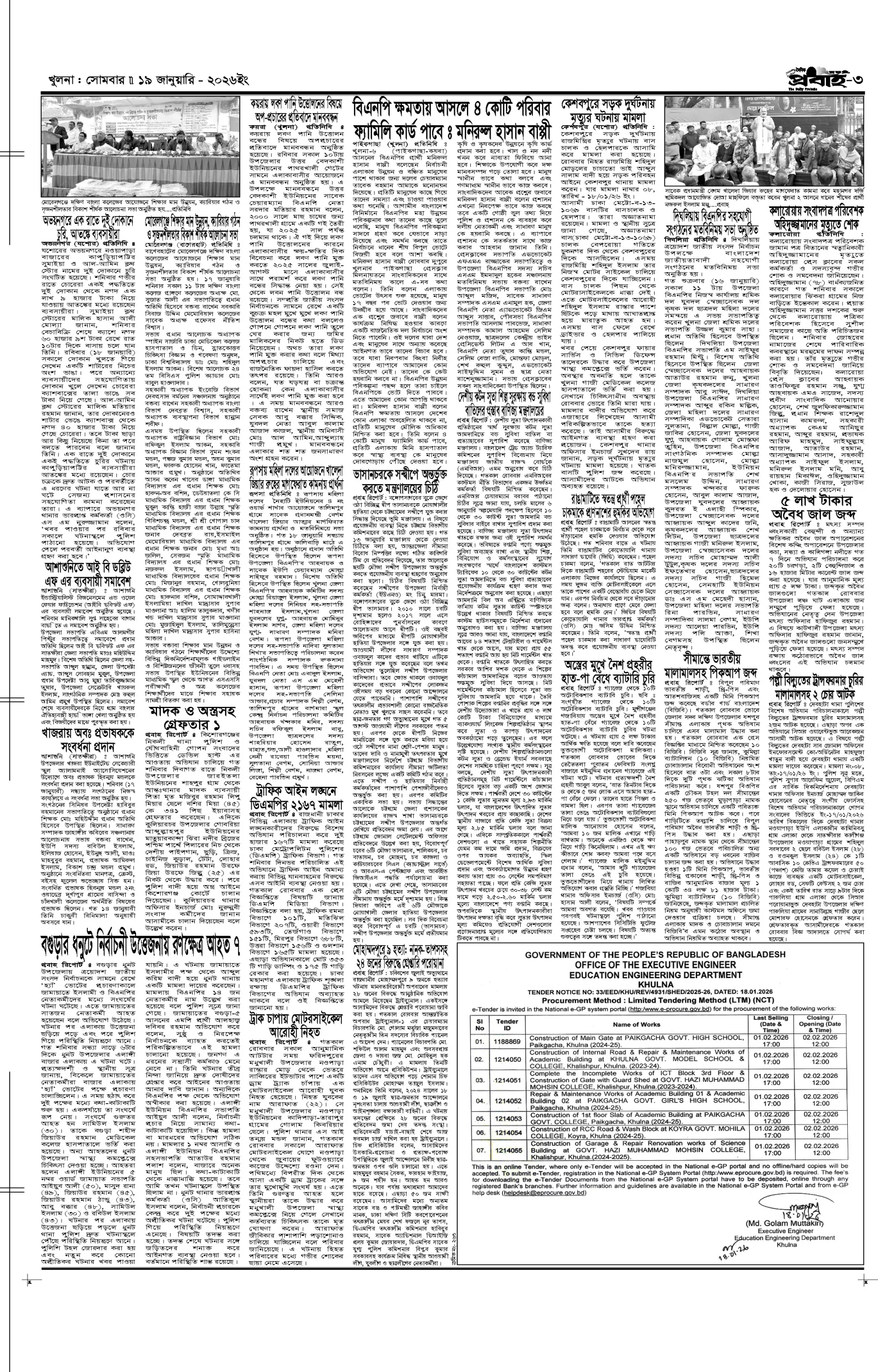 আজকের প্রবাহ-১৯ জানুয়ারি-২০২৬ ইং
