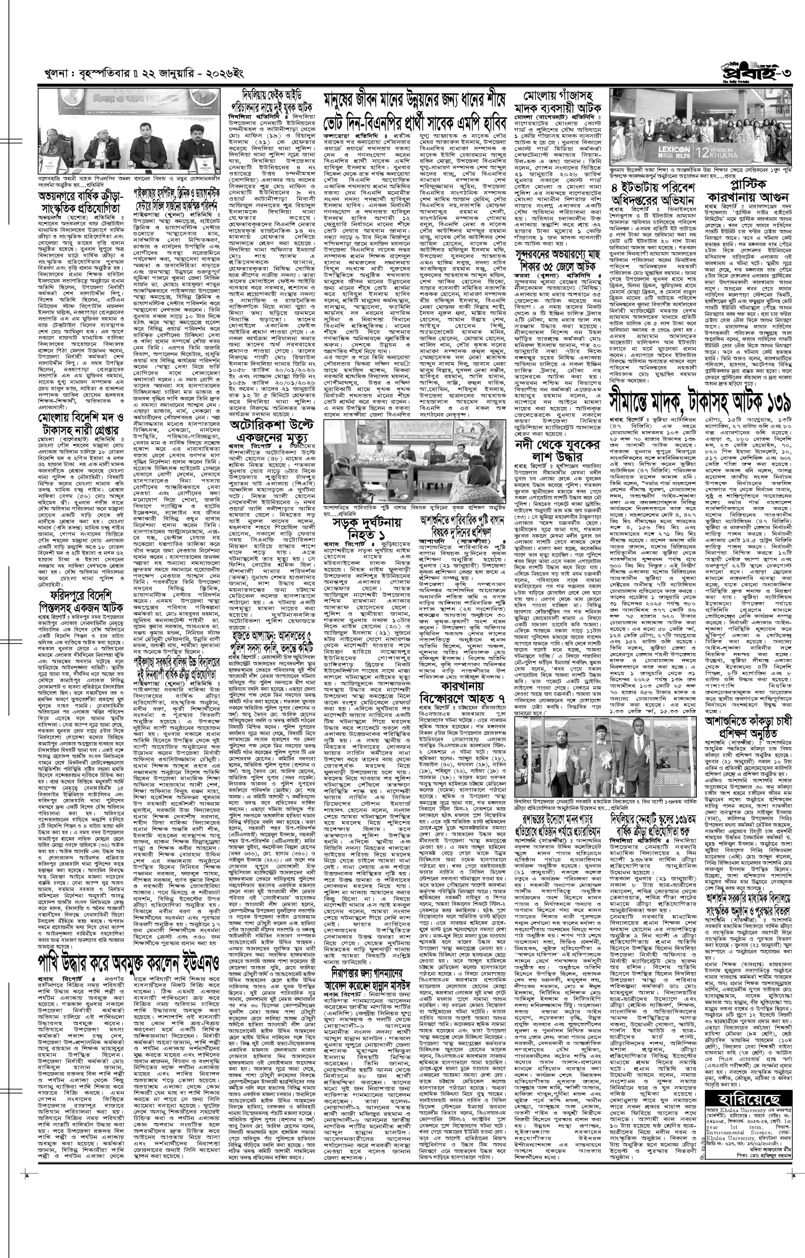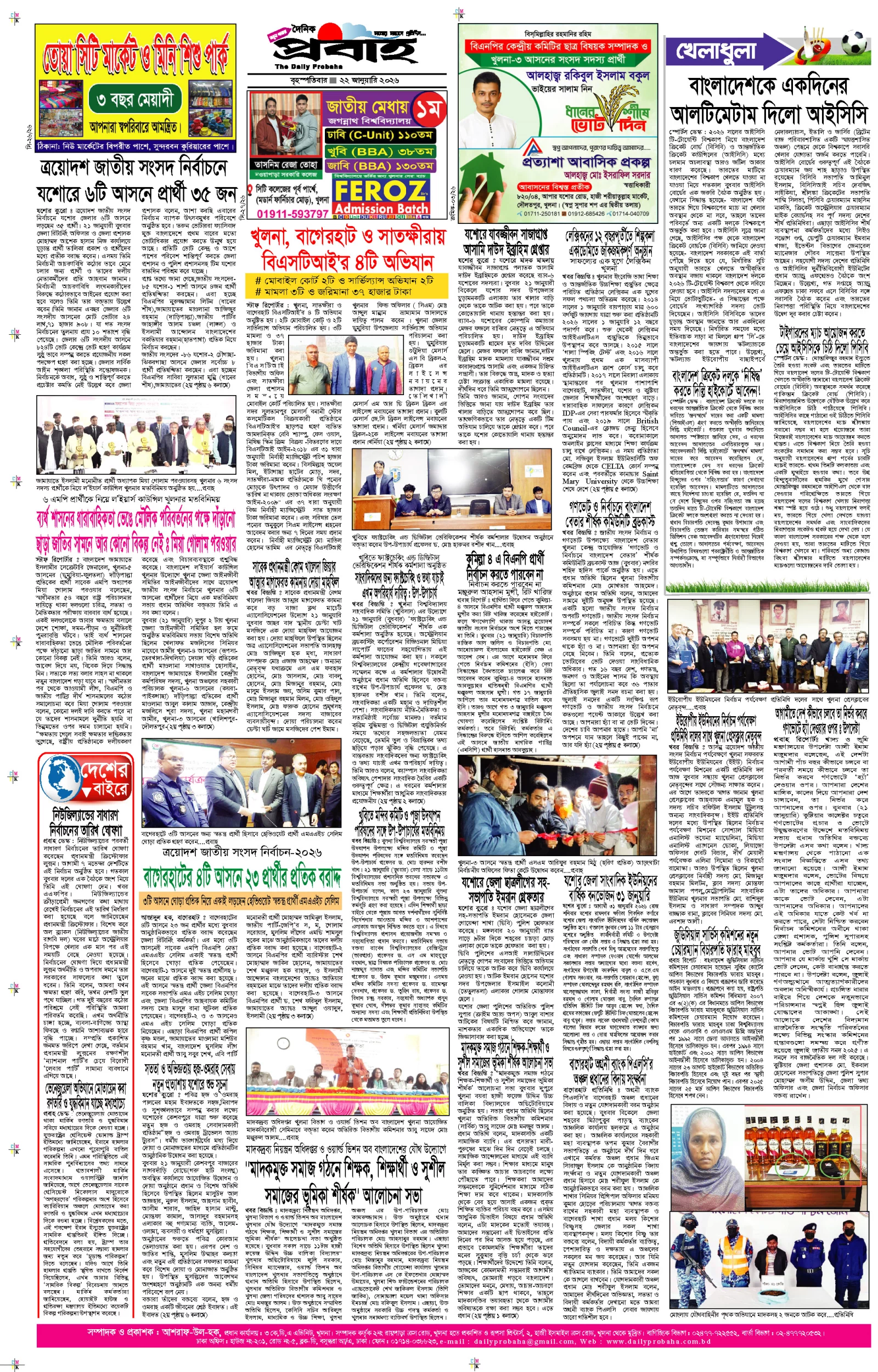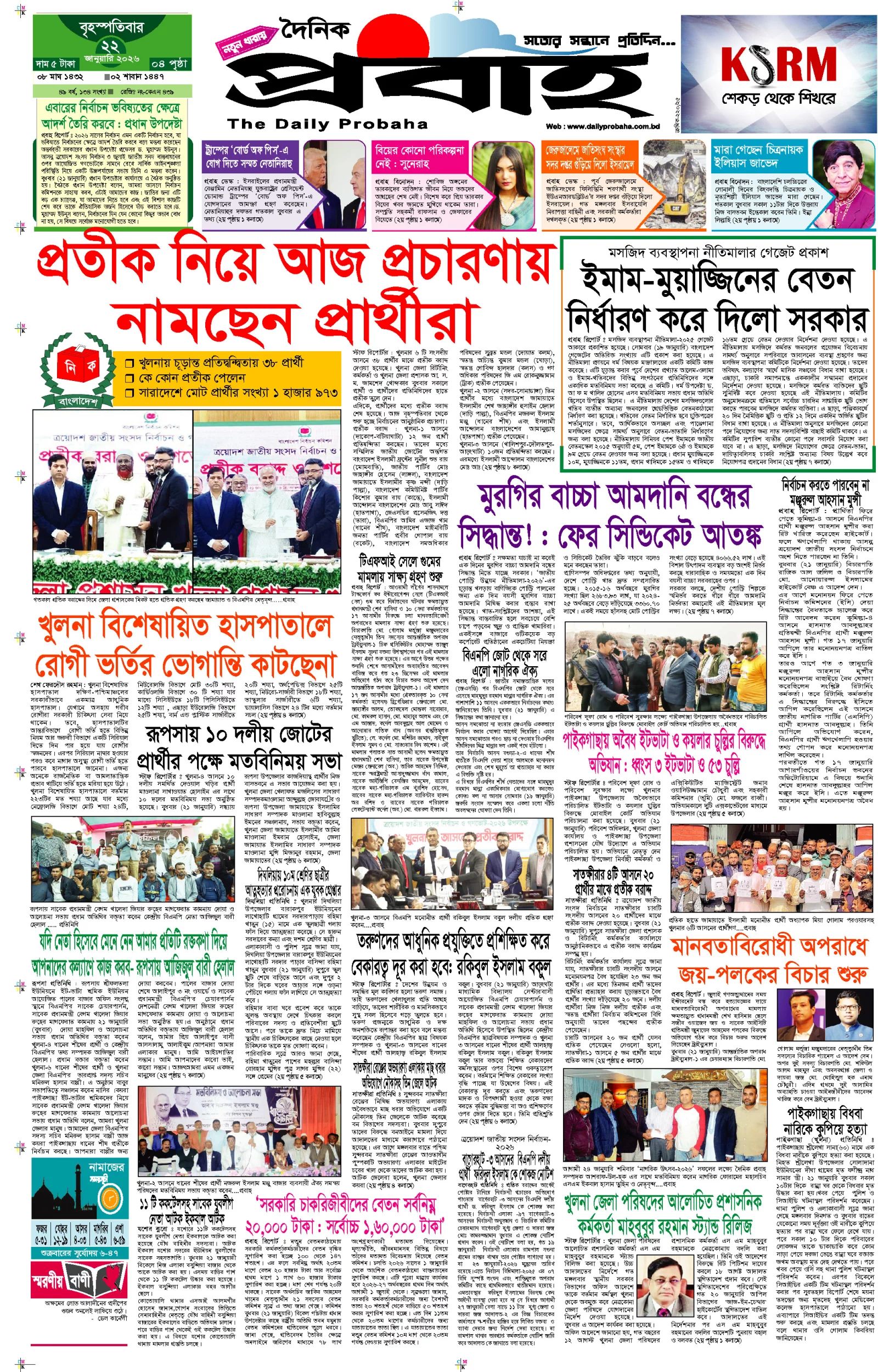 আজকের প্রবাহ-২২ জানুয়ারি-২০২৬ ইং