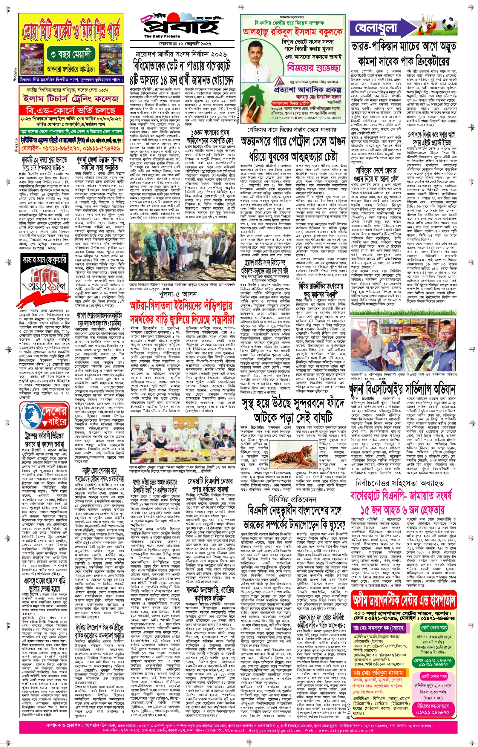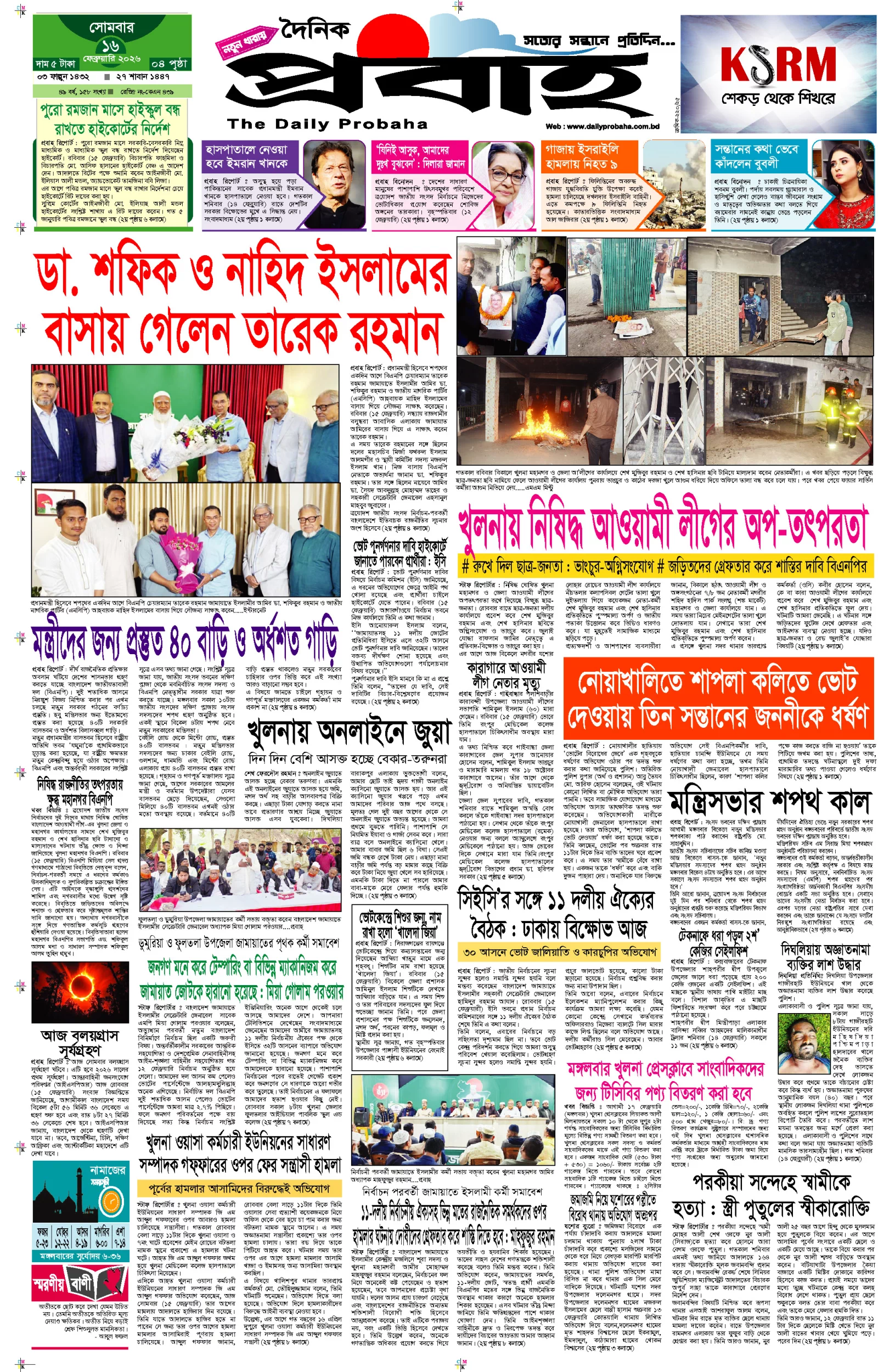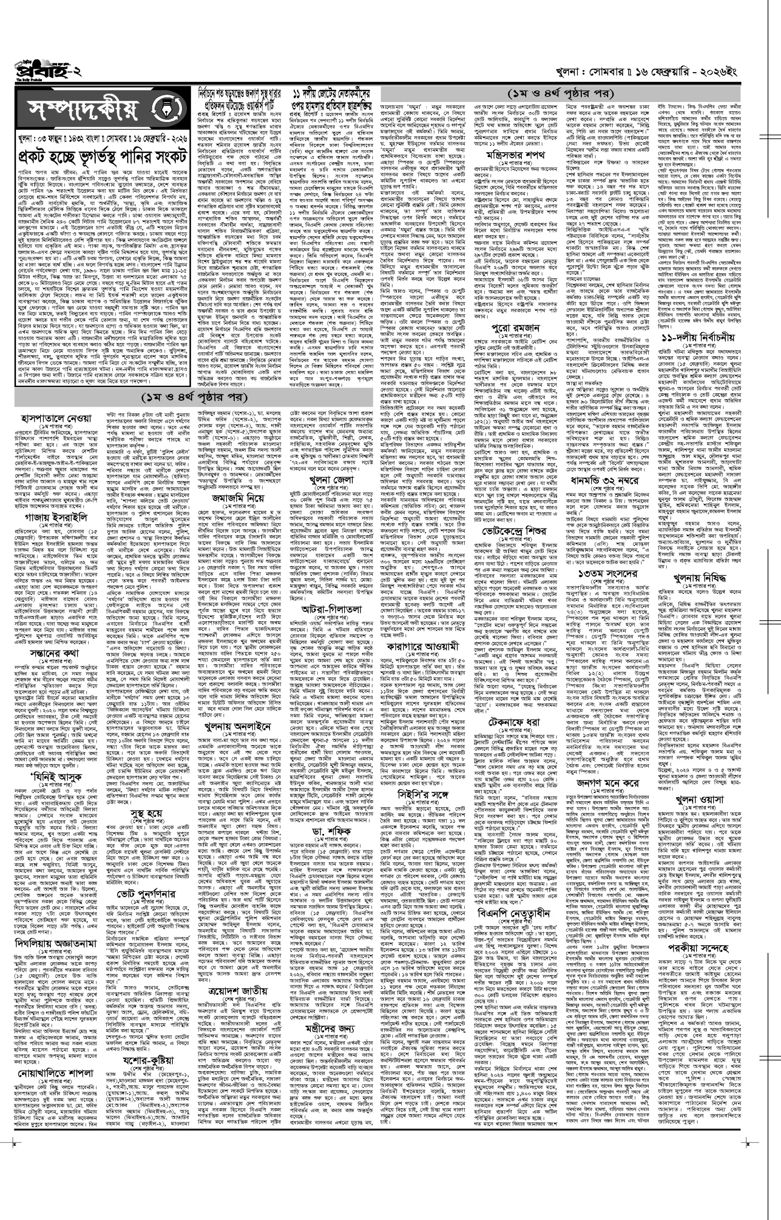 আজকের প্রবাহ-১৬ ফেব্রুয়ারি-২০২৬ ইং