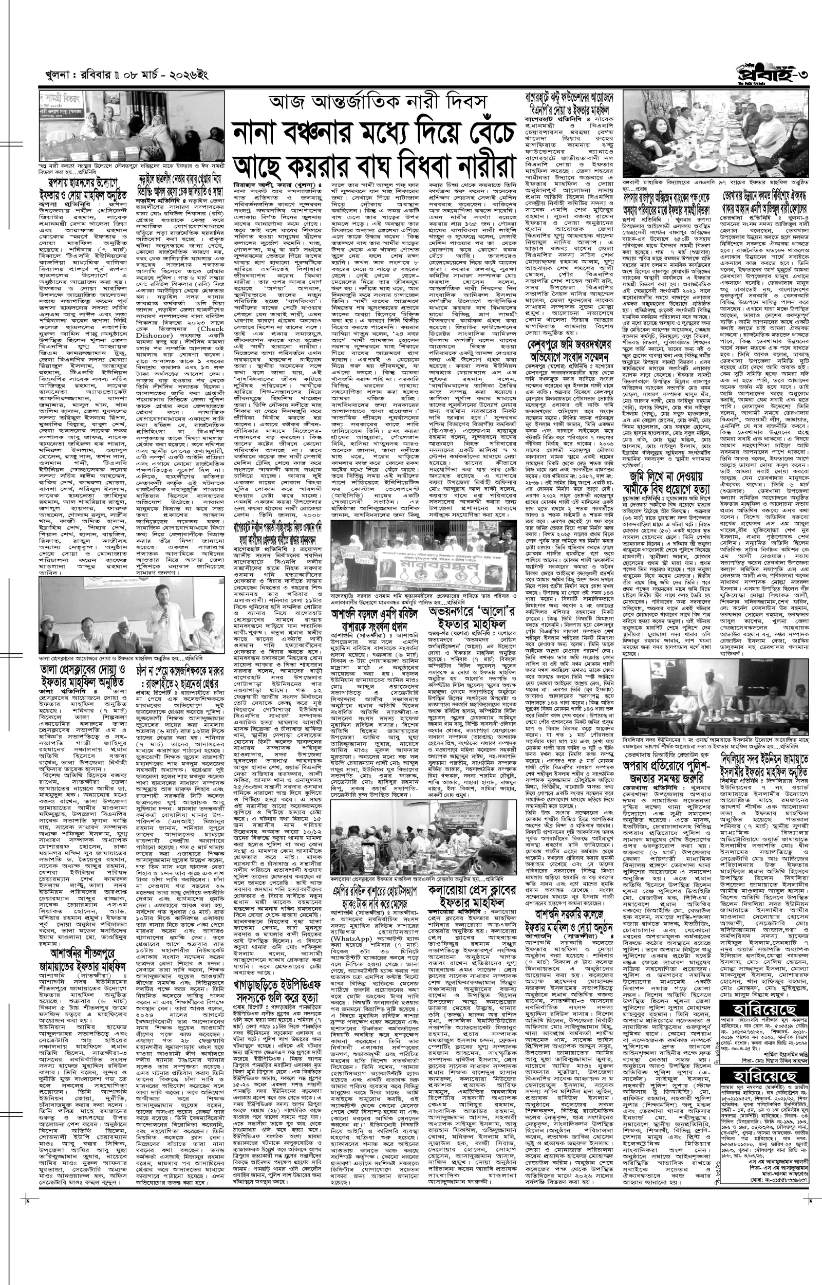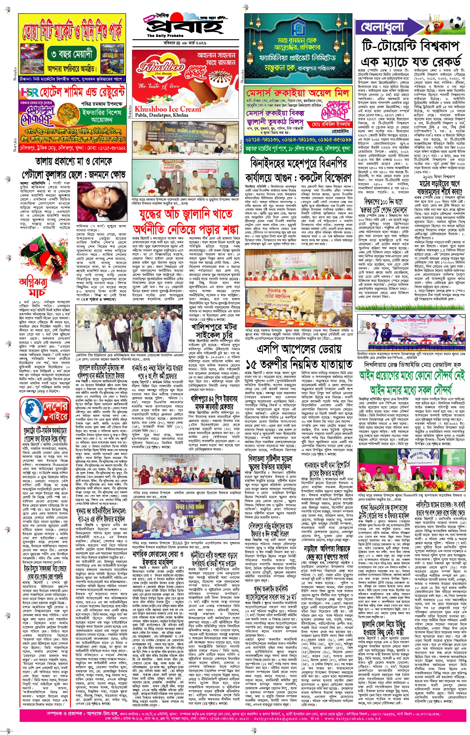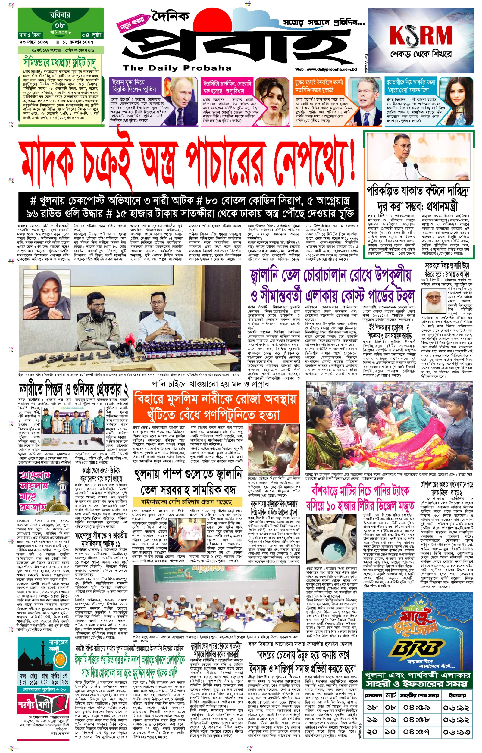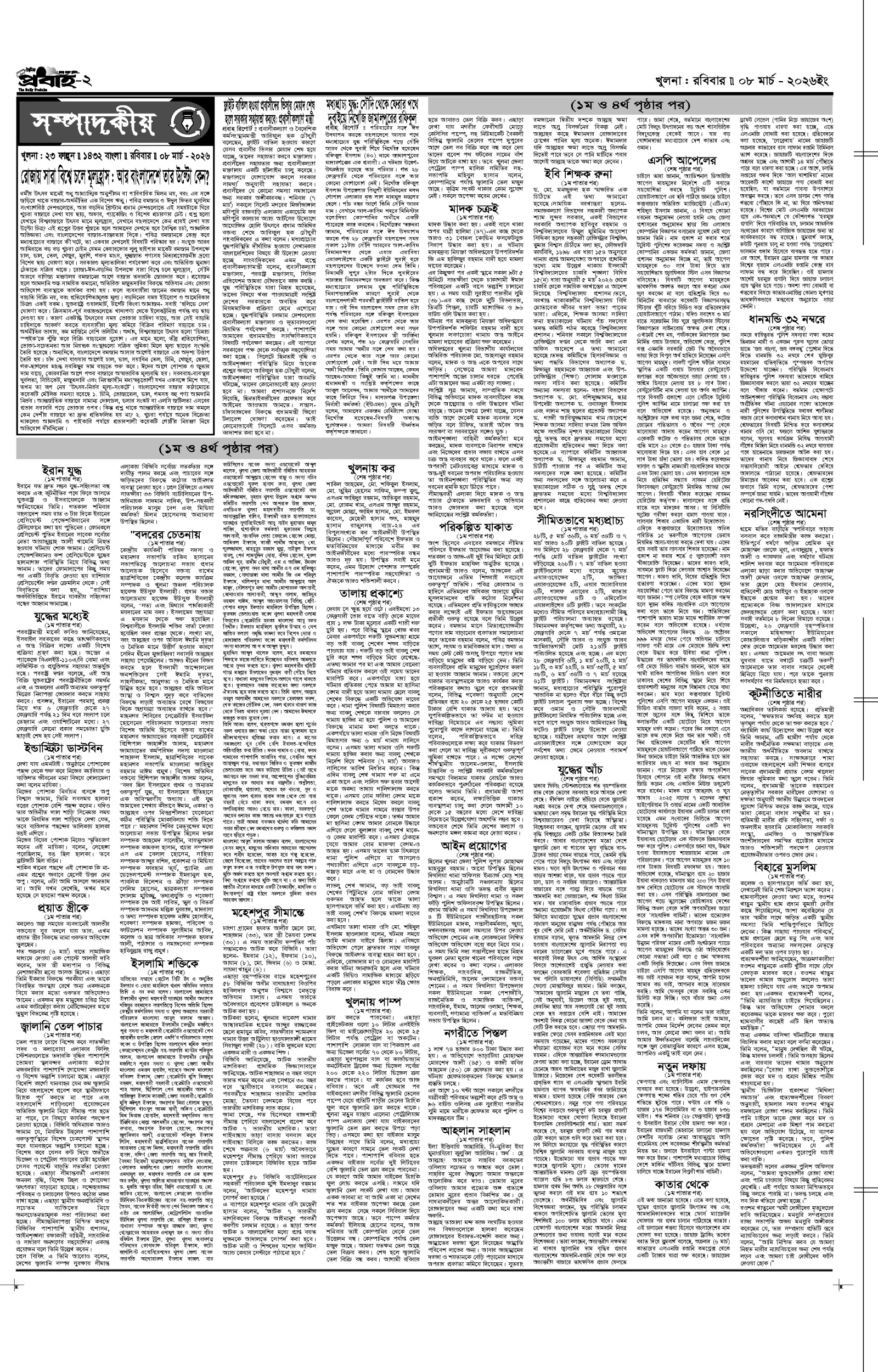 আজকের প্রবাহ-৮ মার্চ-২০২৬ ইং