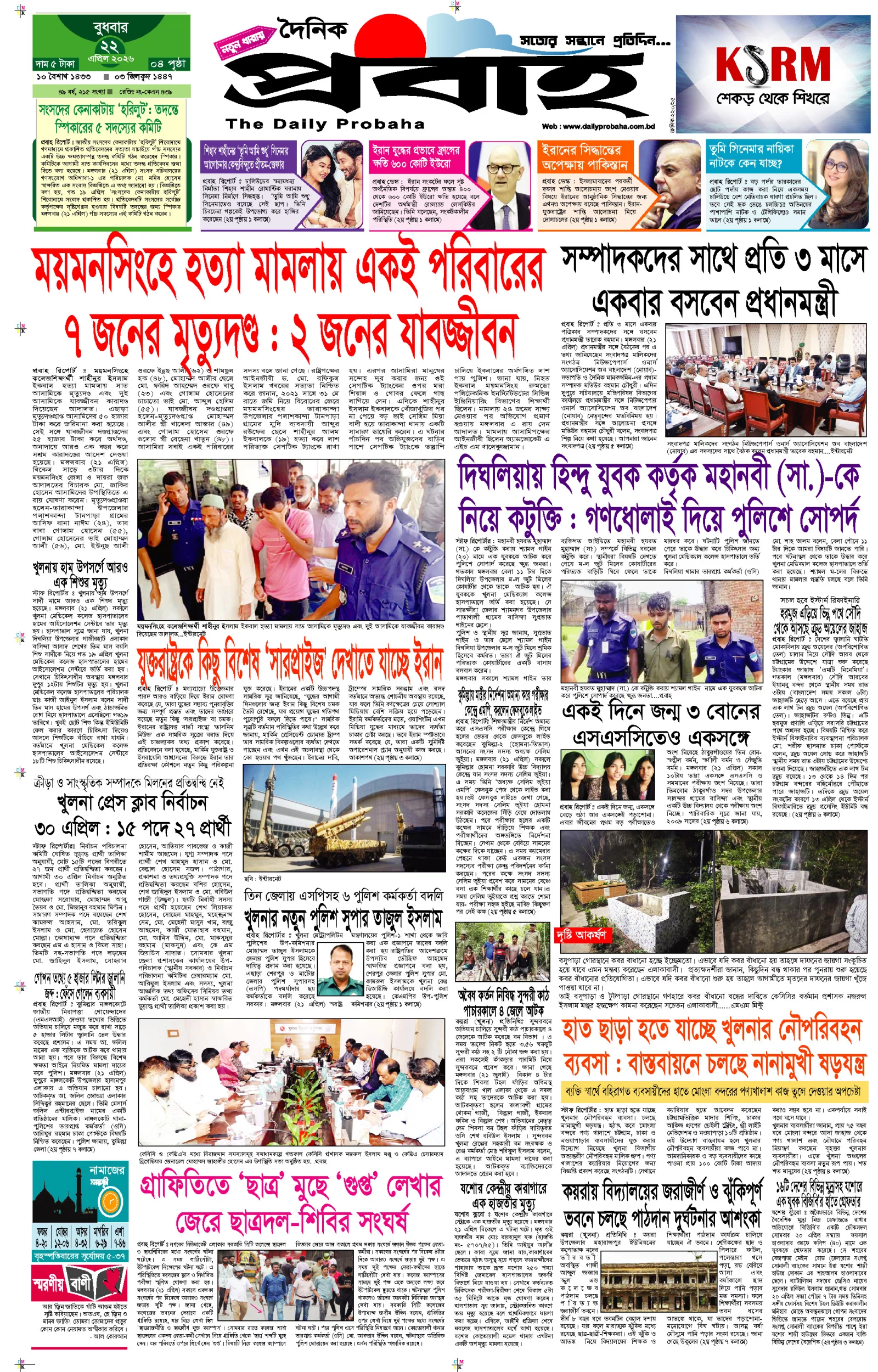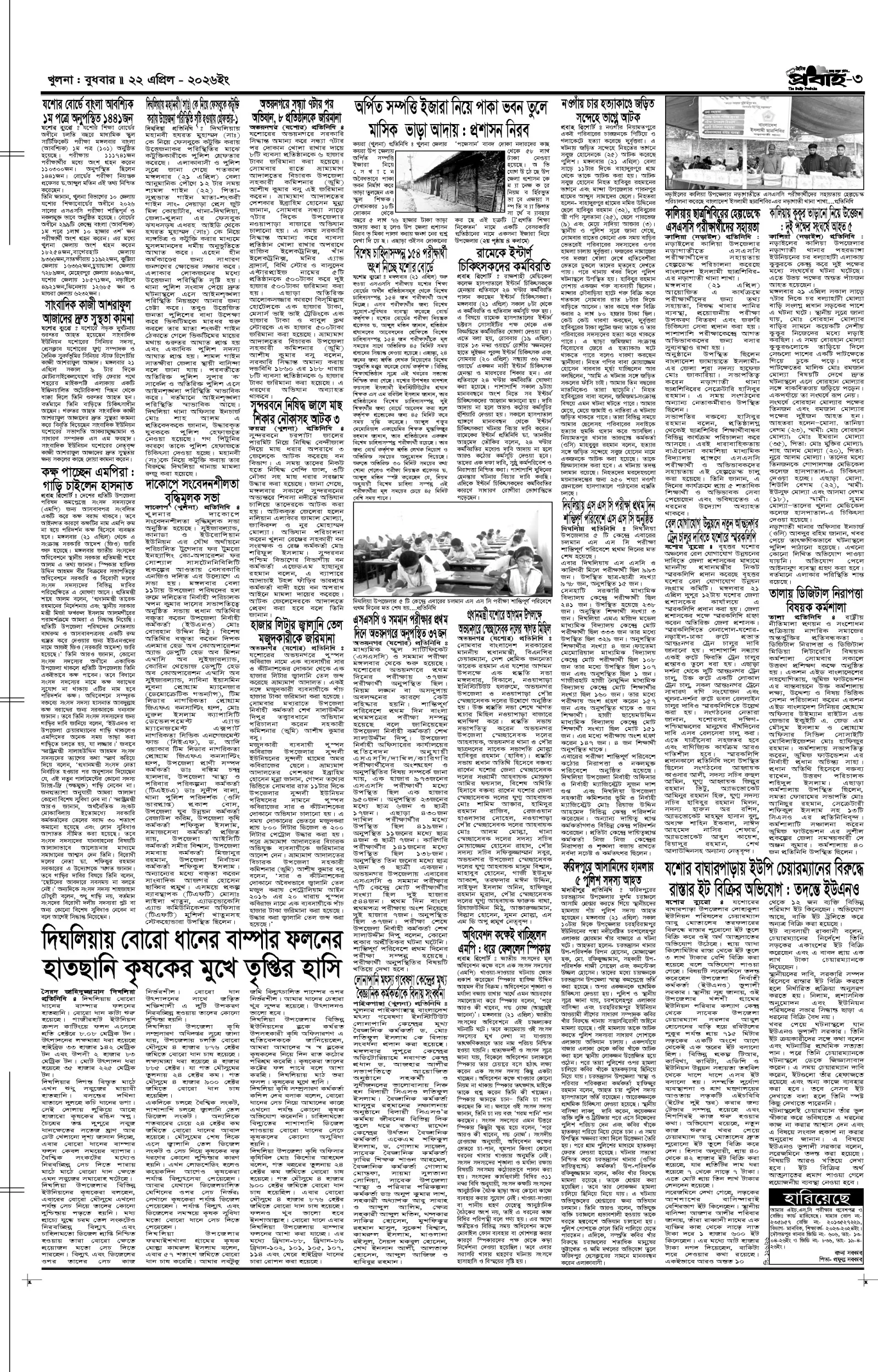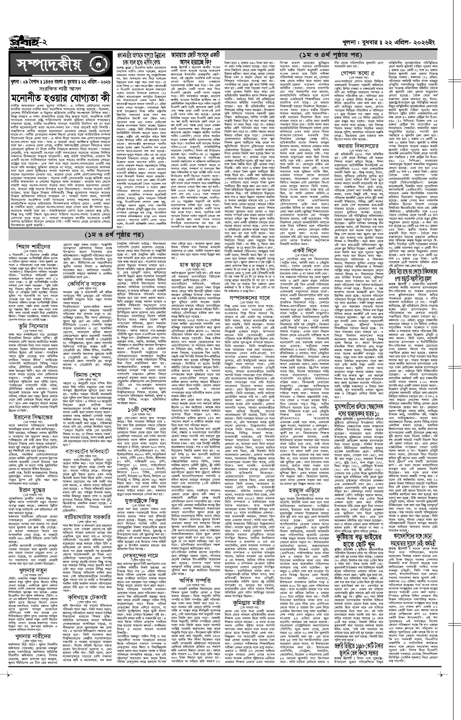 আজকের প্রবাহ-২২ এপ্রিল-২০২৬ ইং