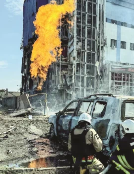 প্রবাহ ডেস্ক : ইউক্রেনের ১১টি অঞ্চলে ৬৭ টি দূরপাল্লার শাহেদ ড্রোন হামলা চালিয়েছে রাশিয়া। গতকাল শনিবার ইউক্রেনের বিমান বাহিনী বলেছে, এর মধ্যে ৫৮ টিকেই ভূপাতিত করতে সক্ষম হয়েছে তারা। ব্রিটিশ বার্তা সংস্থা রয়টার্স এ খবর জানিয়েছে। টেলিগ্রাম মেসেজিং অ্যাপে দেওয়া এক বিবৃতিতে বিমান বাহিনী বলেছে, রাশিয়া-অধিকৃত উপদ্বীপ থেকে ড্রোনগুলি নিক্ষেপ করা হয়। এর ফলে ইউক্রেনের ১১টি ইউনিটেই বিমান প্রতিরক্ষা ইউনিটগুলোকে সক্রিয় থাকতে দেখা যায়। অফিসিয়াল টেলিগ্রামে বেশ কয়েকটি ছবিসহ পোস্ট দিয়ে এক পার্লামেন্ট সদস্য আলাদা এক বিবৃতিতে জানিয়েছেন, এমনকি ইউক্রেনের রাজধানী কিয়েভের পার্লামেন্ট ভবনের পাশে ড্রোনের ধ্বংসাবশেষ পাওয়া গেছে। ছবিতে পার্লামেন্ট ভবনের কাছে মাটিতে ছড়িয়ে ছিটিয়ে থাকা অন্তত চারটি ধ্বংসাবশেষ দেখা গেছে। একটি টুকরো বিল্ডিংয়ের প্রধান প্রবেশদ্বারের কাছে পড়েছিল। কিয়েভে এতদূর রুশ ক্ষেপণাস্ত্রের প্রবেশ বেশ বিরল। শহরটি সোভিয়েত-যুগের নেটওয়ার্ক এবং পশ্চিমা-দানকৃত বিমান প্রতিরক্ষা ব্যবস্থা দ্বারা সুরক্ষিত। এ ছাড়া শহরের কেন্দ্রে অবস্থিত সরকারি ভবনটি সম্ভবত ইউক্রেনের সেরা সুরক্ষিত স্থান। কারণ এখানেই প্রেসিডেন্ট, মন্ত্রিসভা এবং কেন্দ্রীয় ব্যাংকের কার্যালয় রয়েছে। কিয়েভ থেকে রয়টার্সের সংবাদদাতারা জানিয়েছেন, তার গতকাল শনিবার ভোরে কয়েকটি সিরিজ বিস্ফোরণের শব্দ শুনতে পান। এর মধ্যে কয়েকটি শহরের কেন্দ্রের চারপাশে বিকট আওয়াজ করেছে। ২০২২ সালের ফেব্রুয়ারিতে রুশ পূর্ণমাত্রার আক্রমণ শুরু করার পর থেকেই ইউক্রেনজুড়ে হাজার হাজার ক্ষেপণাস্ত্র এবং শাহেদ ড্রোন নিক্ষেপ করেছে মস্কো। ইরানের ডিজাইন করা ড্রোনগুলো রাশিয়া ২০২২ সালের সেপ্টেম্বর থেকেই ব্যয়বহুল ক্ষেপণাস্ত্রের বিকল্প হিসেবে ব্যবহার করছে।