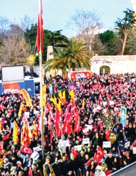 প্রবাহ ডেস্ক : তুরস্কের প্রেসিডেন্ট রিসেপ তাইয়েপ এরদোয়ানের প্রধান বিরোধী ইস্তানবুলের মেয়র একরেম ইমামোগলুকে গ্রেপ্তারের ঘটনায় বিক্ষোভে উত্তাল দেশটি। বিক্ষোভের নিষেধাজ্ঞা উপেক্ষা করে ইস্তাম্বুলের সিটি হলের বাইরে টানা দ্বিতীয় দিনের মতো হাজার হাজার বিক্ষোভকারী পথে নেমেছেন। গতকাল শুক্রবার বিবিসির প্রতিবেদনে বলা হয়েছে, বিক্ষোভকারীদের হটাতে ইস্তানবুলের পুলিশ টিয়ার গ্যাস এবং রাবার বুলেট ছুড়েছে। বিবিসি বলছে, রিপাবলিকান পিপল’স পার্টির (সিএইচপি) সদস্য ইমামোগলু দেশটির আগামী প্রেসিডেন্ট নির্বাচনে এরদোয়ানের প্রধান প্রতিদ্বন্দ্বী। গত বুধবার দুর্নীতি ও সন্ত্রাসী কার্যক্রমের সঙ্গে সংশ্লিষ্টতার অভিযোগের তদন্তের অংশ হিসেবে ইমামোগলুসহ ১০৬জনকে আটক করে দেশটির পুলিশ। এই ঘটনার পর দেশটির পুলিশ সামাজিক যোগাযোগমাধ্যমে উসকানিমূলক পোস্টের অভিযোগে আরও কয়েক ডজন লোককে গ্রেপ্তার করেছে। টানা দ্বিতীয়রাতের বিক্ষোভের প্রতিক্রিয়ায় এরদোয়ান অভিযোগ করেছেন যে বিক্ষোভকারীরা ‘নাটক’ করছেন। তিনি বলেছেন, বিক্ষোভকারীরা এতটাই ভারসাম্য হারিয়ে ফেলেছে যে তারা আমাদের পুলিশকে আক্রমণ করার, বিচারক, প্রসিকিউটরদের হুমকি দেওয়ার মতো অবস্থায় রয়েছে। এদিকে সিএইচপির নেতা ওজগুর ওজেল বিক্ষোভকারীদের উদ্দেশে বলেছেন, জনগণের বিক্ষোভ করার অধিকার আছে। সরকার একটি ক্যু’র চেষ্টা চালাচ্ছে বলে অভিযোগ করেছেন তিনি। তুরস্কের স্বরাষ্ট্রমন্ত্রী আলী ইয়েরলিকায়া বৃহস্পতিবার সকালে এক ঘোষণায় বলেছেন, পুলিশ অনলাইন ২৬১টি সন্দেহভাজন অ্যাকাউন্ট ম্যানেজার চিহ্নিত করেছে- যারা হিংসা, বিদ্বেষ ছড়াতে এবং অপরাধ করতে উসকানি দিটে কন্টেন্ট পোস্ট করেছে।গত বৃহস্পতিবার ইমামোগলুর এক্সে একটি বার্তা পোস্ট করা হয়। পোস্টে তুরস্ককে জাতি হিসেবে মন্দ কাজের বিরুদ্ধে দাঁড়ানোর আহ্বান জানানো হয়েছে। সেইসঙ্গে দেশটির বিচার বিভাগ এবং এরদোয়ানের দলের সদস্যদের অন্যায়ের বিরুদ্ধে লড়াই করার আহ্বান জানানো হয়। ইমামোগলু বলেছেন, সময় এসেছে কথা বলার। এর আগে বার্তাসংস্থা এপির প্রতিবেদনে বলা হয়, জনপ্রিয় বিরোধী নেতা ইমামোগলু আটকের ঘটনা গণতন্ত্র নিয়ে তুরস্কে উদ্বেগ আরও বাড়িয়ে তুলেছে। এর জেরে ইস্তাম্বুলসহ অন্যান্য শহরে বিক্ষোভ চলছে। সমালোচকেরা এই দমন-পীড়ন গত বছর স্থানীয় নির্বাচনে ক্ষমতাসীন দলের উল্লেখযোগ্য পরাজয়ের পর এরদোয়ানের দুই দশকের বেশি সময় ধরে শাসনকাল দীর্ঘায়িত করার প্রচেষ্টা হিসেবে দেখছেন। তবে নতুন এই বিক্ষোভের ফলে এরদোয়ান চাপে পড়েছেন বলে প্রতিবেদনে বলা হয়েছে।