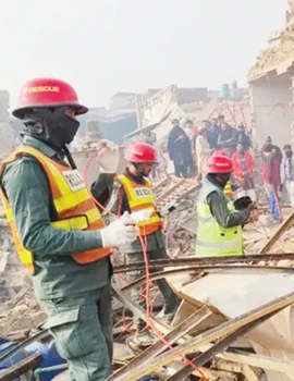 প্রবাহ ডেস্ক : পাকিস্তানের ফয়সালাবাদের একটি গ্লু নির্মাণ কারখানায় ভয়াবহ বয়লার বিস্ফোরণের ঘটনায় এখন পর্যন্ত অন্তত ১৫ জনের মৃত্যু হয়েছে। এ ঘটনায় কমপক্ষে সাতজনকে স্থানীয় বিভিন্ন হাসপাতালে চিকিৎসা দেওয়া হচ্ছে। গতকাল শুক্রবার ভোরে ফয়সালাবাদের মালিকপুর এলাকায় অবস্থিত কারখানাটিতে এই বিস্ফোরণ ঘটে। বিস্ফোরণের তীব্রতায় কারখানার ভবনটি ধসে পড়ে এবং আশপাশের বেশ কয়েকটি স্থাপনাও ক্ষতিগ্রস্ত হয়। প্রাথমিকভাবে ধারণা করা হচ্ছে, গ্যাস লিকেজ থেকেই বয়লার বিস্ফোরণটি ঘটেছে। কমিশনার জানান, নিহতদের বেশিরভাগই কারখানার পাশের বাড়ির বাসিন্দা এবং পাঞ্জাবের মুখ্যমন্ত্রী মরিয়ম ব্যক্তিগতভাবে উদ্ধার অভিযান তদারকি করছেন।বিস্ফোরণের তীব্রতায় কারখানার ভবন ধসে পড়ে এবং তাতে আগুন ধরে যায়। রেসকিউ বিভাগের এক মুখপাত্র জানান, বিস্ফোরণটি কারখানার কেমিক্যাল গুদামে ঘটে, এতে কারখানার বড় অংশ, বিশেষ করে ছাদের বেশিরভাগ অংশ ধসে পড়ে। কারখানার পেছনে থাকা সাত-আটটি বাড়িও ক্ষতিগ্রস্ত হয়েছে। এসব বাড়ির ছাদ ভেঙে পড়ায় বাসিন্দা ও কারখানার কয়েকজন শ্রমিক ধ্বংসস্তূপে আটকা পড়েন। প্রথমে তিনজনের মৃত্যু ও কয়েকজন আহত হওয়ার খবর পাওয়া গেলেও, পরে ধ্বংসস্তূপ থেকে আরও মরদেহ উদ্ধারের পর মৃতের সংখ্যা বেড়ে ১০ এবং এরপর ১৫-তে পৌঁছায়। গুরুতর আহতদের মধ্যেও কয়েকজন চিকিৎসাধীন অবস্থায় প্রাণ হারিয়েছেন। উদ্ধারকর্মীরা ধ্বংসস্তূপ সরানোর কাজ চালিয়ে যাচ্ছেন এবং আশঙ্কা করা হচ্ছে, আরও মানুষ ভেতরে আটকা থাকতে পারেন বলে নিহতের সংখ্যা আরও বাড়তে পারে।