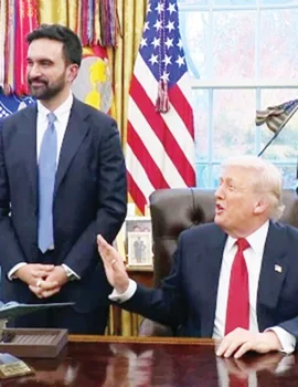 প্রবাহ ডেস্ক : যুক্তরাষ্ট্রের নিউইয়র্ক সিটির নবনির্বাচিত মেয়র জোহরান মামদানির সঙ্গে হোয়াইট হাউসে বৈঠকে করেছেন। এ সময় প্রেসিডেন্ট ডোনাল্ড ট্রাম্প বলেছেন, ‘মামদানি যদি তাকে ‘ফ্যাসিস্ট’ বলে থাকে, এ নিয়ে তিনি আপত্তি করবেন না।’ মামদানি নিজের নির্বাচনী প্রচারণা সমাবেশে এই শব্দটি ব্যবহার করেছিলেন। গতকাল শনিবার সিএনএন জানিয়েছে, বৈঠকটি দুর্দান্ত এবং ফলপ্রসূ হয়েছে। প্রেসিডেন্ট ট্রাম্প বলেন, আমাদের একটি মিল আছে, আমরা চাই শহরটি ভালোভাবে চলুক। আমি তাকে অভিনন্দন জানিয়েছি এবং কিছু গুরুত্বপূর্ণ বিষয় নিয়ে আলোচনা করেছি। তিনি আরও যোগ করেন, ‘আমি মনে করি তিনি একজন খুব ভালো মেয়র হবেন। তার সাফল্য আমাকে খুশি করবে। দলগত পার্থক্য থাকলেও তার কিছু কাজ কিছু রক্ষণশীল এবং উদারপন্থী মানুষকে চমকে দিতে পারে।’ বৈঠককে ফলপ্রসূ আখ্যা দিয়ে মামদানি বলেন, ‘প্রেসিডেন্টের সঙ্গে আলোচনা করে আমি কৃতজ্ঞ। আমরা জীবনযাত্রার ব্যয়, ভাড়া, মুদিখানা ও ইউটিলিটি সমস্যার সমাধানে একসাথে কাজ করার জন্য প্রস্তুত।’ উভয় নেতা রাজনৈতিক পার্থক্য থাকা সত্ত্বেও নগরীর উন্নয়ন এবং বাসিন্দাদের অর্থনৈতিক চ্যালেঞ্জ সমাধানে মনোনিবেশ করেছেন।