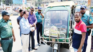 নগরবাসীকে যানজটে নাকাল থেকে রক্ষা করতে অবৈধ ইজিবাইকের বিরুদ্ধে অভিযান শুরু ঃ ৩২টি আটক