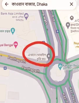 এমন বাস্তবতায় আপনি আপনার লোকেশন জানার চেষ্টা করলেন, গুগল ম্যাপ আপনার লোকেশনও জানিয়ে দিল। পাশাপাশি আপনাকে একটি বার্তা দিল, ‘এখানে মোবাইল চুরি হয়’। কী করবেন? এটি তো ভয়ংকর তথ্য! খোদ রাজধানীতেই এমন অভিজ্ঞতার মুখোমুখি হয়েছেন অনেকে। কারওয়ান বাজার গোলচত্বর থেকে পান্থপথে যাওয়ার পথে ডানপাশের জায়গাটি পিন পয়েন্ট করে এমন তথ্য দেওয়া হয়েছে গুগল ম্যাপ থেকে। সেখানে বলা হয়, ‘এখানে মোবাইল চুরি হয়’। এমন কিছু স্ক্রিনশট ইতোমধ্যে সামাজিক যোগাযোগমাধ্যমে ভাইরাল হয়েছে। বিষয়টি নিয়ে অনেক হাস্যরস করেছেন নেটিজেনরা, আবার অনেকে লেখাটি ‘সতর্কবার্তা’ হিসেবে নিয়েছেন। যদিও পরে গুগলের পক্ষ থেকে চিহ্নিত স্থান ও লেখাটি সরিয়ে নেওয়া হয়েছে। তারপরও অনেকের মনে প্রশ্নÍ এটি কীভাবে গুগল ম্যাপে এলো? জানা গেছে, গুগল ম্যাপে পয়েন্ট যুক্ত করতে ও লেভেল বাড়াতে বিভিন্ন কন্টেন্ট যুক্ত করে থাকেন লোকাল গাইডরা। এর মধ্যে স্থানের নাম, বাসা-বাড়ি বা প্রতিষ্ঠানের নাম, ছবি, রাস্তা এগুলো যুক্ত করা হয়। চাইলে তা এডিটও করা যায়। কারওয়ান বাজারের ওই অংশটি চিহ্নিত করে সেখানে কেউ হয়তো এডিট করে লিখে দিয়েছেন ‘এখানে মোবাইল চুরি হয়’। আসলেই কি স্থানটিতে মোবাইল চুরি হয় আমাদের নিজস্ব অনুসন্ধানে জানা যায়, রাজধানীর মধ্যে যতগুলো মোবাইল ছিনতাই ও চুরির স্পট রয়েছে, তার মধ্যে কারওয়ান বাজার অন্যতম। কারওয়ান বাজার মোড় ও এর আশপাশের এলাকায় প্রায় প্রতিদিন মোবাইল ছিনতাই কিংবা চুরির ঘটনার ঘটে। দিন কিংবা রাত, কারওয়ান বাজার থেকে ফার্মগেট, পান্থপথ, হাতিরঝিল অথবা বাংলামোটরগামী প্রতিটি রাস্তায় মোবাইল ছিনতাই ও চুরির অনেক অভিযোগ রয়েছে। বিশেষ করে অফিস শেষে রাতে বাসায় ফেরার সময় অনেকেই মোবাইল ছিনতাই বা চুরির ঘটনার শিকার হয়েছেন। এমন একজন ভুক্তভোগী হলেন জিহাদ রহমান। পান্থপথে অবস্থিত বসুন্ধরা সিটি শপিং কমপ্লেক্সের একটি কাপড়ের দোকানে ম্যানেজার হিসেবে কর্মরত। গত ৫ জুন রাতে বাসায় ফেরার পথে কারওয়ান বাজার সিগন্যাল থেকে ফার্মগেট যাওয়ার পথে তার মোবাইলটি ছিনতাই হয়। ঘটনার বর্ণনা দিয়ে জিহাদ রহমান বলেন, আমার বাসা ফার্মগেট তেজকুনি পাড়ায়। ঘটনার দিন রাত ১০টা ২০ মিনিটের দিকে মার্কেট থেকে বের হই। রাস্তায় প্রচ- জ্যাম থাকায় হেঁটে ফার্মগেট যাওয়ার সিদ্ধান্ত নেই। এর মাঝে কারওয়ান বাজার সিগন্যাল পার হয়ে ফার্মগেটের রাস্তায় উঠতেই গ্রামের বাড়ি থেকে আম্মা ফোন দেন। ফোনে কথা বলতে বলতে কারওয়ান বাজার মেট্রোরেল স্টেশনের নিচে যেতেই পেছন থেকে একজন আমার মোবাইল নিয়ে দৌড় দিয়ে পান্থপথের দিকে চলে যায়। আমি পেছন পেছন কিছুক্ষণ দৌড়ায়, কিন্তু রাস্তায় প্রচুর গাড়ি থাকায় ঠিকভাবে সামনে এগোতে পা